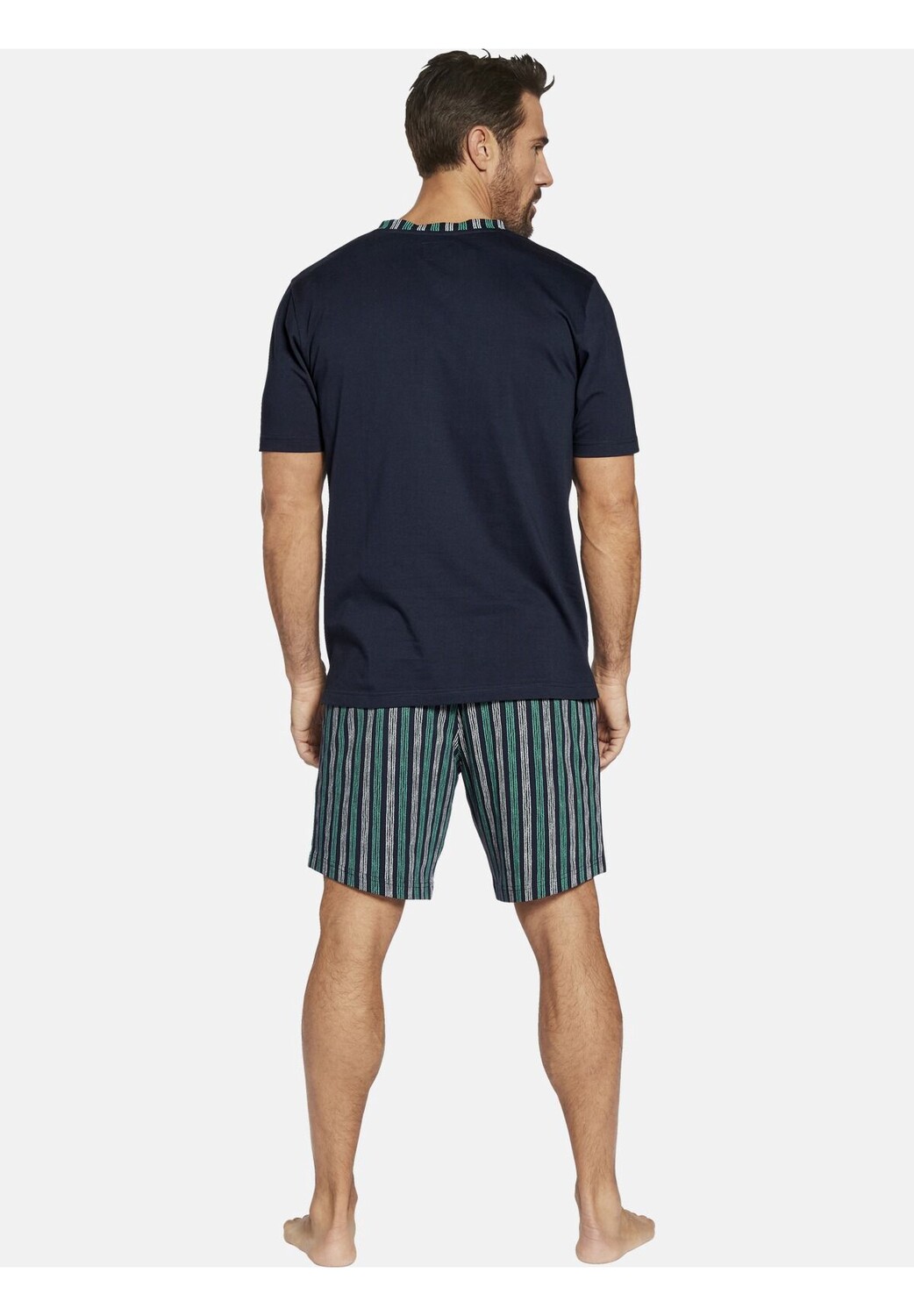 ЯН ВАНДЕРСТОРМ — ваш эксперт по мужской моде больших размеров. Короткие пижамы HAGER дарят приятные сны благодаря удобному крою с разрезами по бокам, которые сохраняют комфорт в любой ситуации. Дышащий хлопок хорошо впитывает влагу и способствует спокойному сну. Пижаму с эластичным поясом, V-образным вырезом и нагрудным карманом с вышитым логотипом СП также можно преподнести на завтрак. Сочетание полосатых и однотонных секций создает свежий, несложный стиль. Спокойной ночи! Комфортная посадка. 100% хлопок. Машинная стирка.