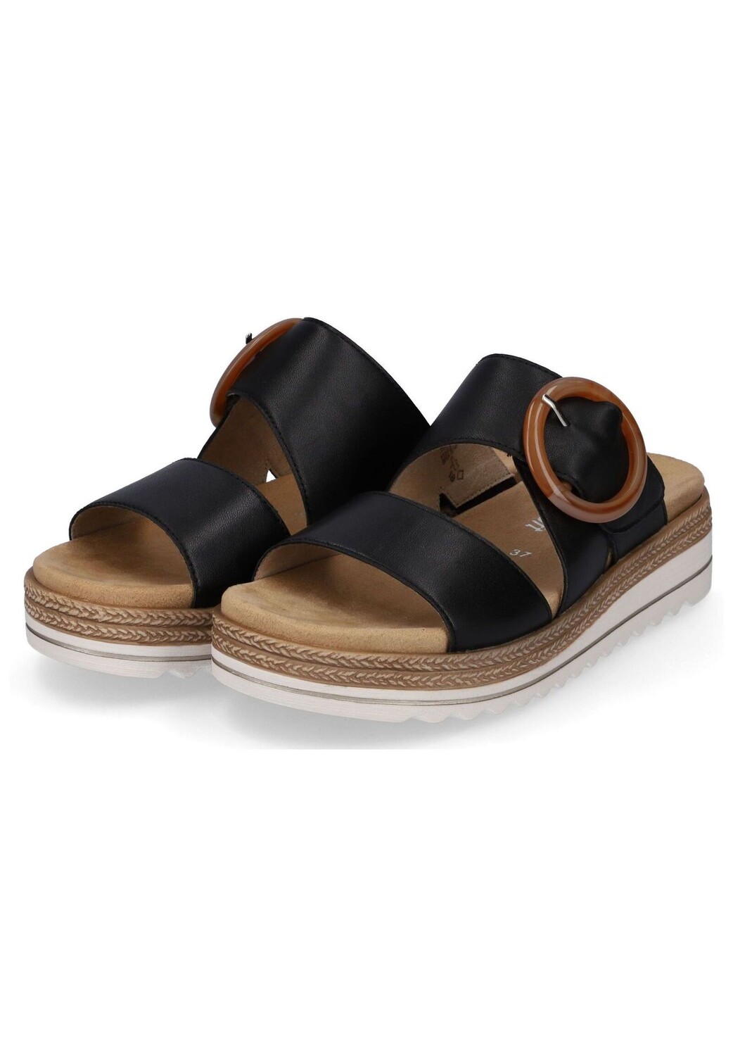 С платьем, шортами или юбкой — эти мюли от Remonte на платформе и из высококачественной гладкой кожи — идеальная обувь для теплых летних дней. Простая по дизайну, но с эффектной декоративной пряжкой модель прекрасно расстегивается. Определенно стоит упомянуть мягкую текстильную стельку, которая обеспечивает приятную мягкость ног при каждом шаге. Ширина F 1/2 идеально подходит для узких ног.