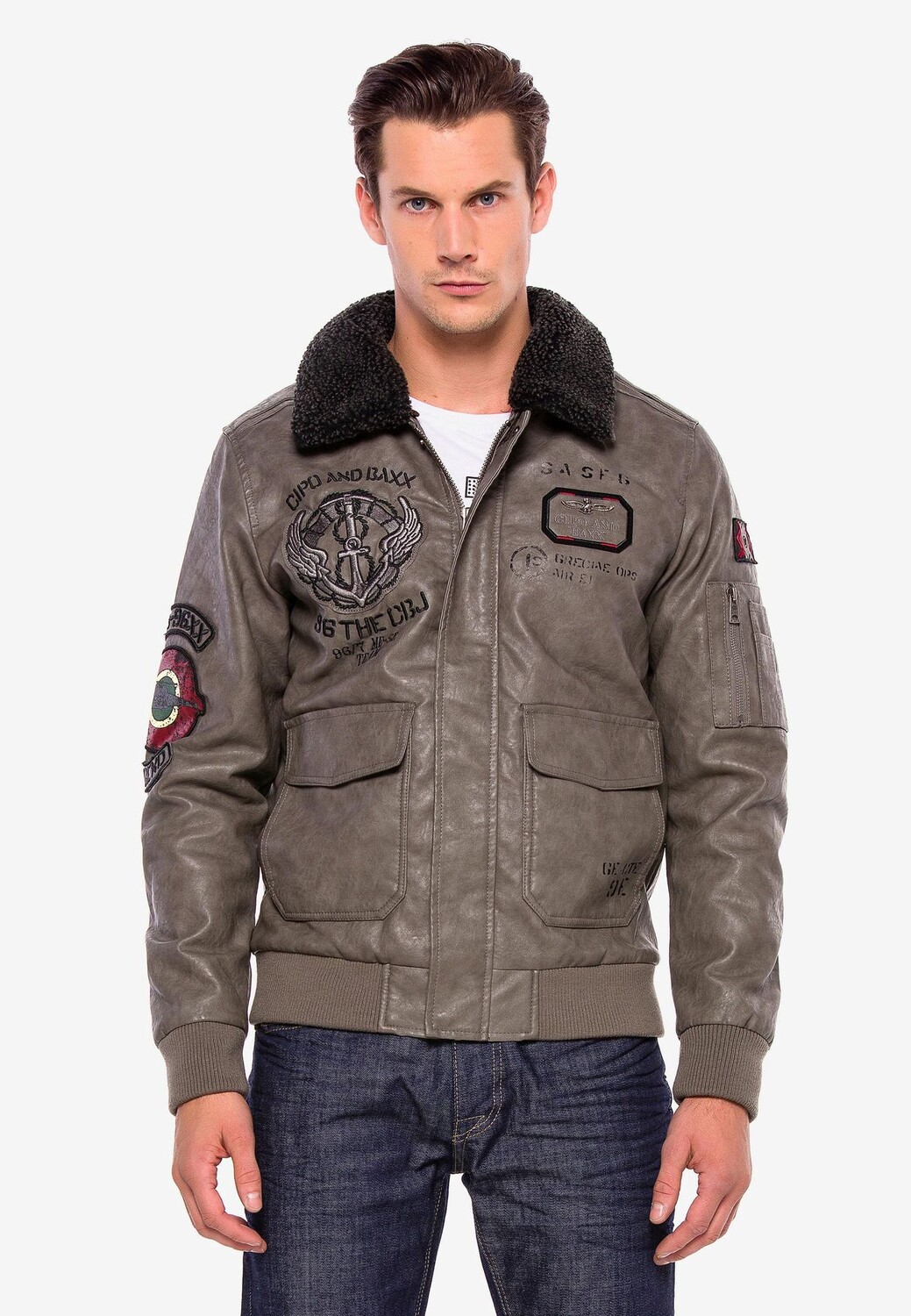 Бомбер с меховым воротником и нашивкой CIPO & BAXX, бежевый