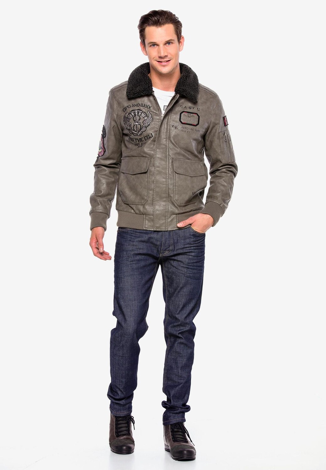 Никто не сможет обмануть вас этим бомбером от Cipo & Baxx. Это абсолютно модно в кожаном исполнении и с отделкой из искусственного меха на воротнике. Нашивки и принты в армейском стиле добавляют рок-акценты, а невероятно крутая вышивка спереди, на рукавах и спине сразу привлекает всеобщее внимание и делает вас законодательницей моды. Идеальная для холодных дней модель утеплена искусственным мехом по всей длине, благодаря чему вам будет уютно и тепло даже зимой. Практичные передние карманы и карманы на рукавах обеспечивают практичное место для важных вещей и идеально дополняют образ. СМ164