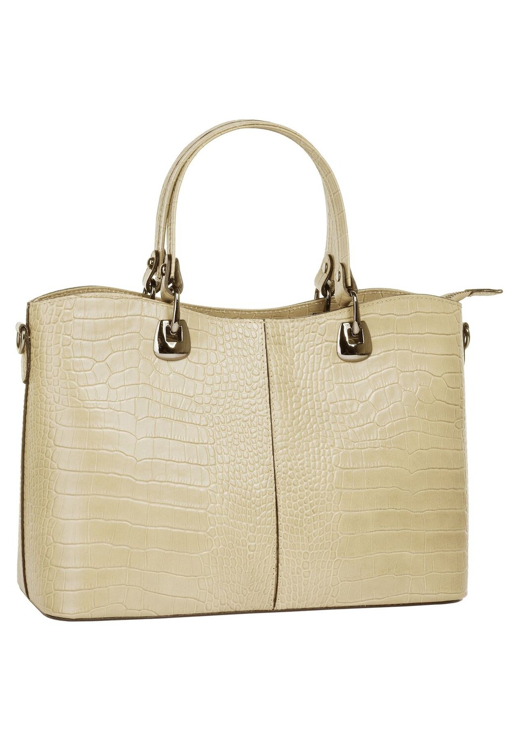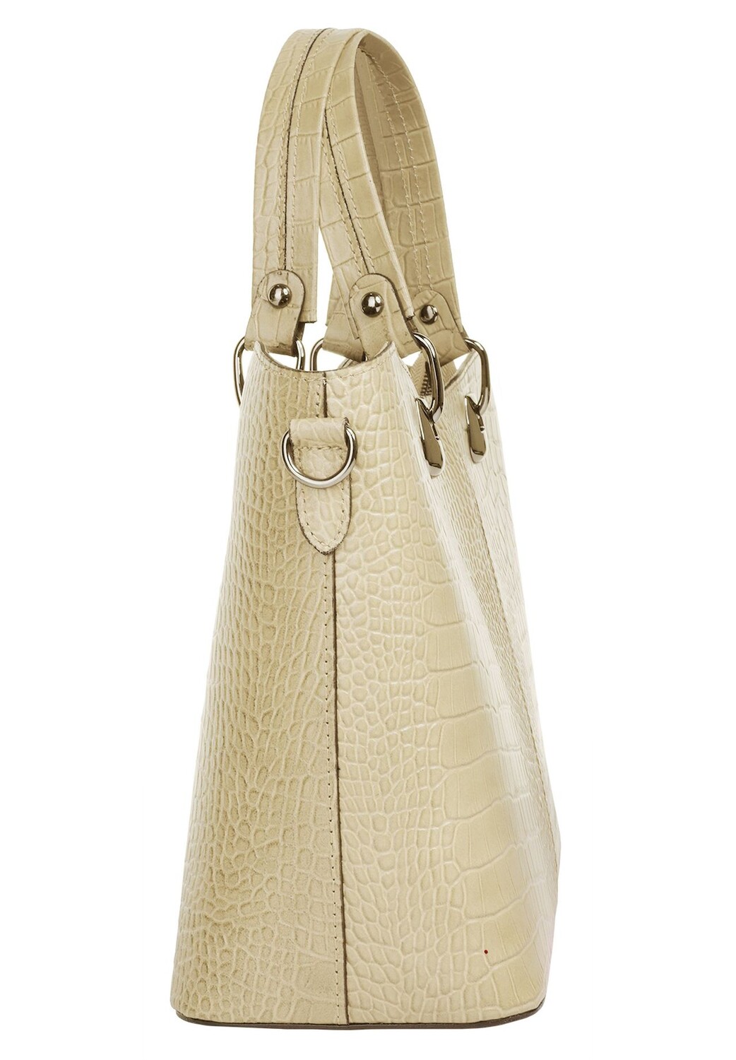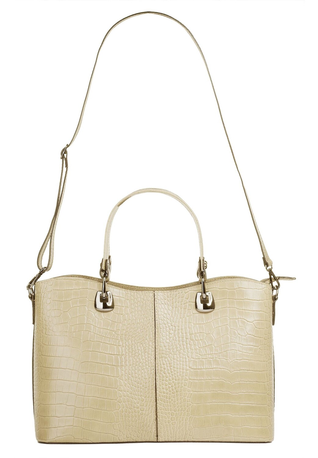 Повседневно и одновременно элегантно: именно так представляет собой сумочка от Cluty в модном крокодиловом образе! Основное отделение этого модного аксессуара разделено на две части запирающимся внутренним карманом. Это позволяет хранить в организованном и понятном виде все, что нельзя пропустить в дороге. Напольные гвозди защищают кожу от износа и обеспечивают устойчивость * Сделано в Италии * Изготовлен из 100% коровьей кожи * Модный крокодиловый вид * 1 основное отделение, состоящее из двух частей, на молнии * 1 внутренний карман на молнии * 1 внутренний карман на молнии * 1 отделение для смартфона внутри (до 5 дюймов) * 1 переднее отделение с магнитной застежкой * Нижние заклепки для защиты кожи * 2 ручки для переноски * плавно регулируемый съемный плечевой ремень (45–85 см)