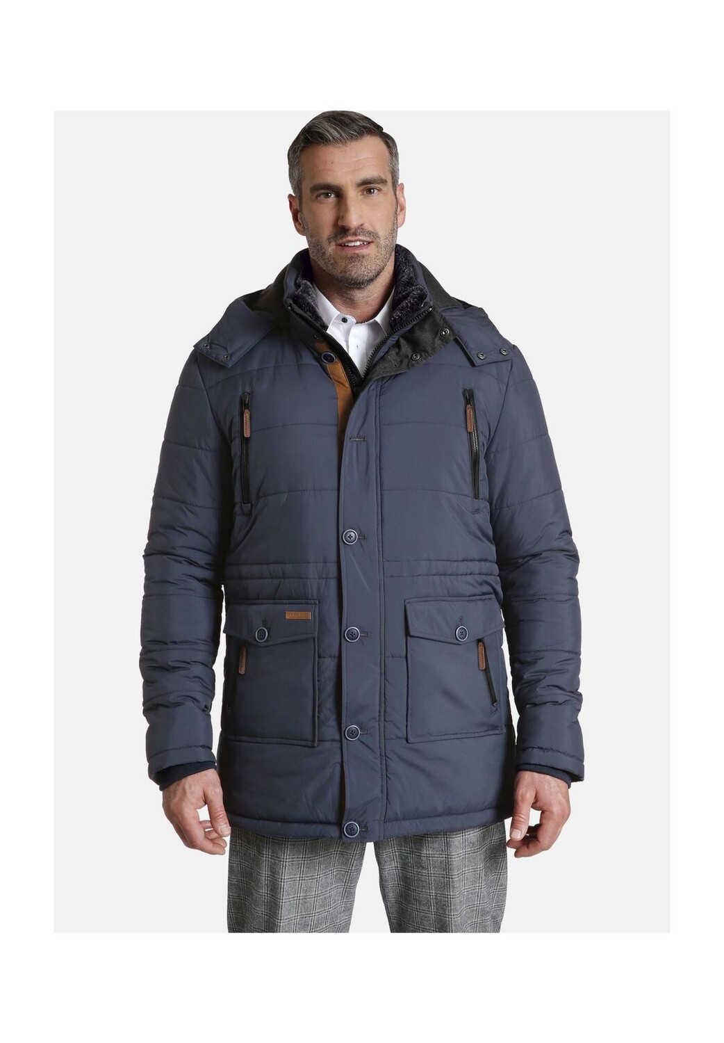Описание товара: Charles Colby предлагает британский шик мужской одежды больших размеров. Стеганая куртка SIR HORACE побалует вас максимальным комфортом. Он имеет повседневный и удобный крой, воротник на подкладке из плюшевого меха и регулируемый капюшон на теплой подкладке. Отделку из искусственного меха и капюшон можно снять. В сочетании с высоким воротником-стойкой и рукавами с трикотажными манжетами он надежно защищает от ветра и холода. Куртка для отдыха на открытом воздухе застегивается на продуманную комбинацию молнии и планки с пуговицами. В общей сложности четыре внешних кармана и три внутренних кармана вместят все, что вы хотите взять с собой. Это также впечатляет визуально: стеганые швы и велюровая полоса на планке с пуговицами придают спортивный и мужественный вид. Ширину длинной куртки также можно варьировать с помощью внутренней кулиски.