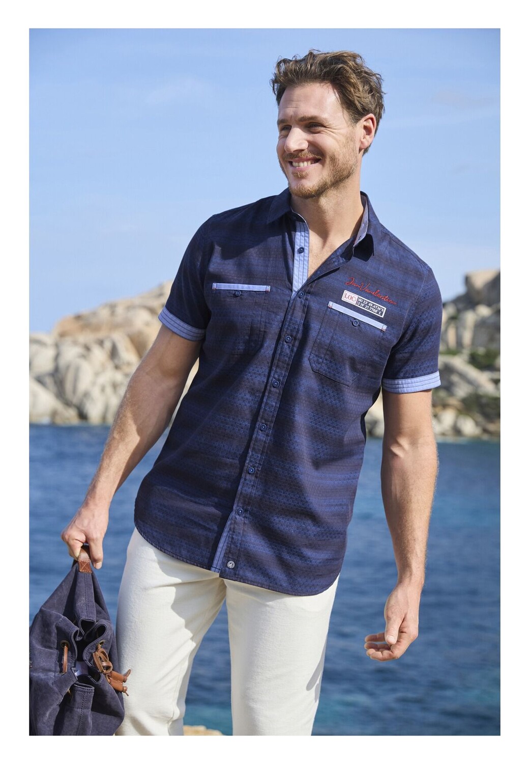 Описание товара: JAN VANDERSTORM — ваш эксперт по мужской моде больших размеров. Готов идти? В рубашке с короткими рукавами LEIKVARD от JAN VANDERSTORM каждый тротуар становится пешеходным мостом, а каждая улица — океаном. Эта рубашка является образцом стиля благодаря шуршащему плетению, вечному воротнику «Кент» и двум практичным нагрудным карманам. Но подождите, это еще не все: простая надпись в сочетании с отпечатком координат слева отражает ваши навыки навигации даже на суше. Края рукавов, шикарная петля на спинке и треугольные нашивки на подоле играют контрастами, как капитан с ветром. Располагайтесь поудобнее на борту стильного катера LEIKVARD – и отправляйтесь в путь к горизонту. 100% хлопок. Машинная стирка. КОЛЛЕКЦИЯ +FIT: Комфортный стиль из нашей коллекции +Fit.
