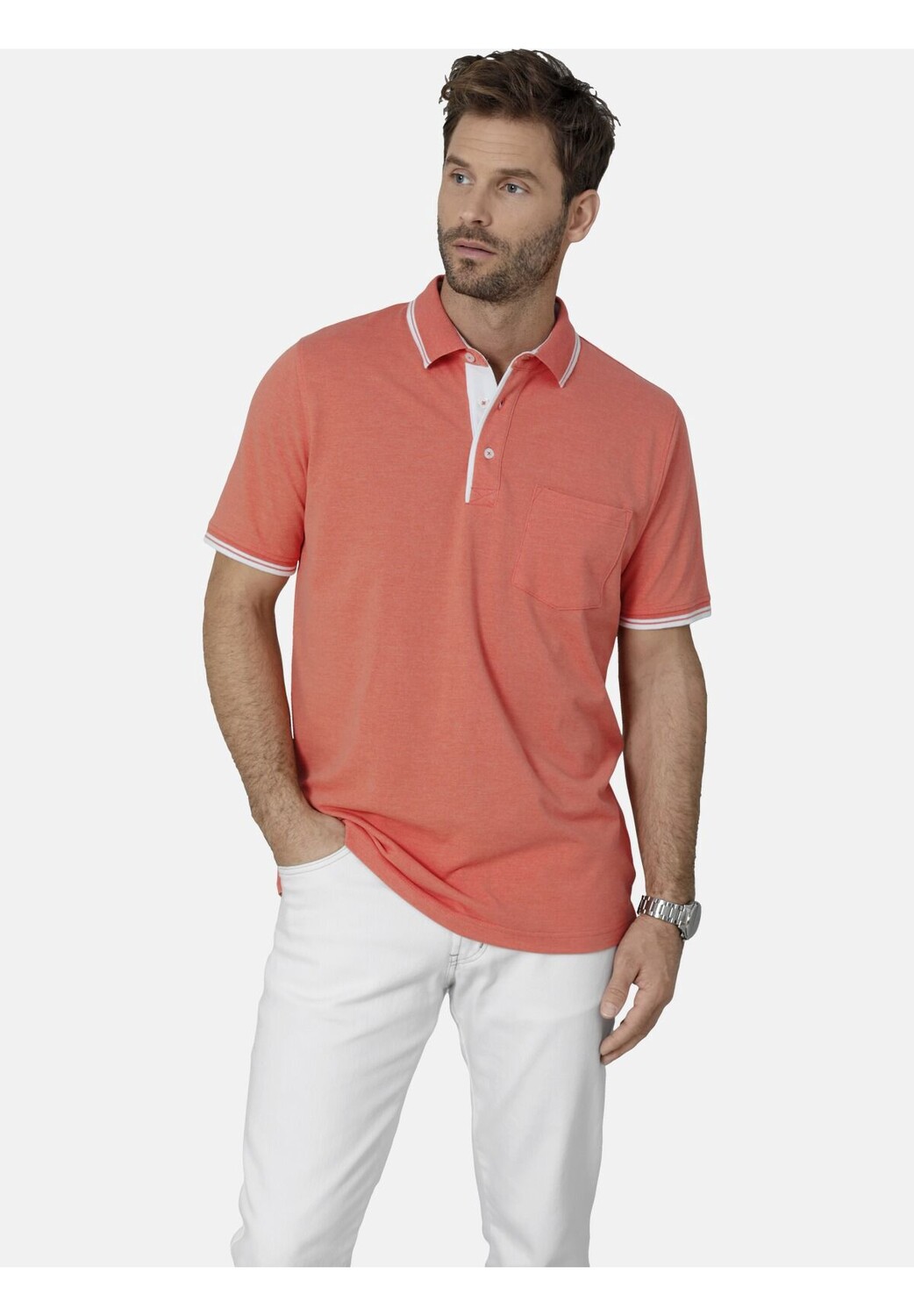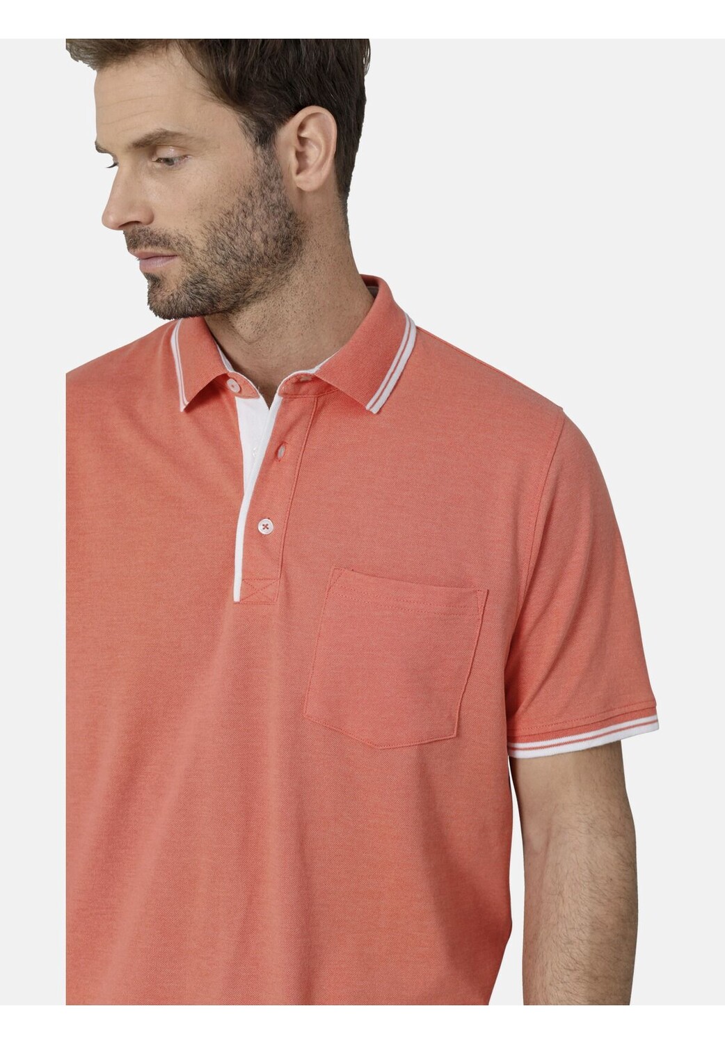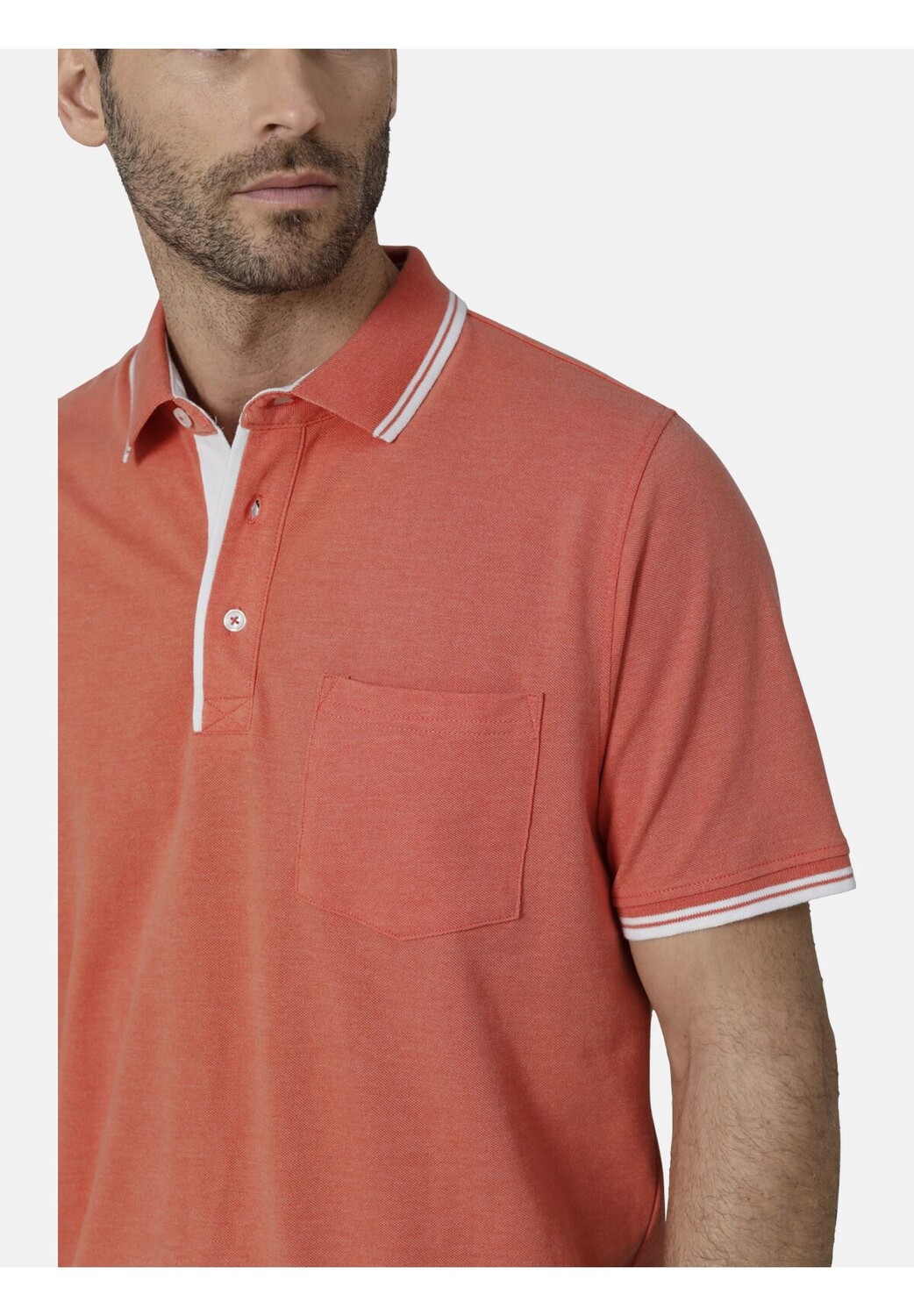 Особенности с нагрудным карманом Гладить при низкой температуре оранжевый Стирать с похожими цветами, Стирать наизнанку, Гладить наизнанку Рубашка-поло TESSAVEST с нагрудным карманом Легкий материал пике Планка воротника контрастного цвета С планкой на пуговицах