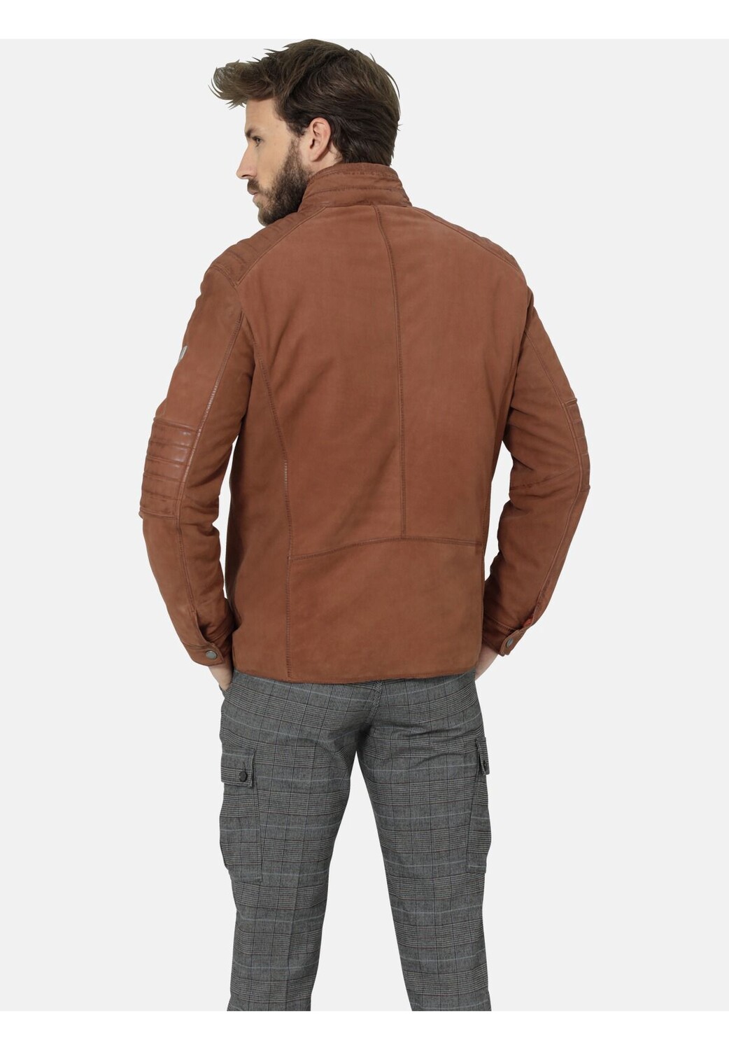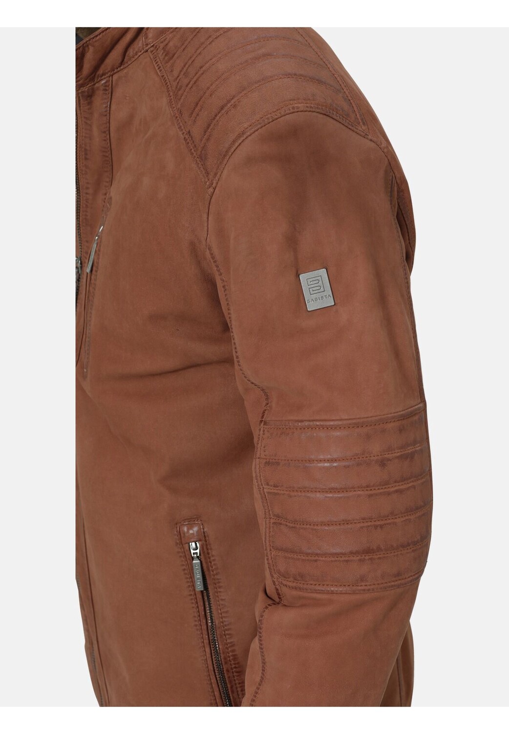 Особенности с декоративной строчкой Специальная чистка кожи практичные карманы коньячный цвет Не подлежит стирке Кожаная куртка SORENTELLO с декоративная строчка