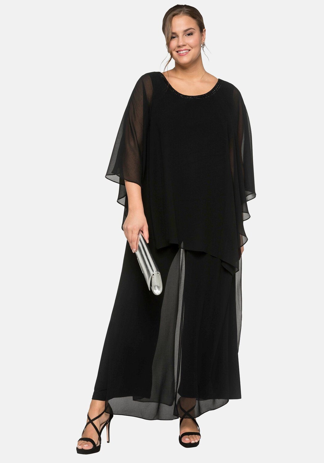 Туника в стиле 2-в-1 от sheego. Стразы на круглом вырезе и перекрещенные ленты в глубоком вырезе спинки привлекают внимание. Широкие рукава длиной 3/4 динамично ниспадают на плечи и придают дополнительный женственный вид благодаря полупрозрачному виду. А-силуэт и заостренный низ обеспечивают идеальную посадку по фигуре. Несмотря на простоту в уходе, струящуюся и слегка структурированную поверхность, внутренняя часть комфортна и эластична.