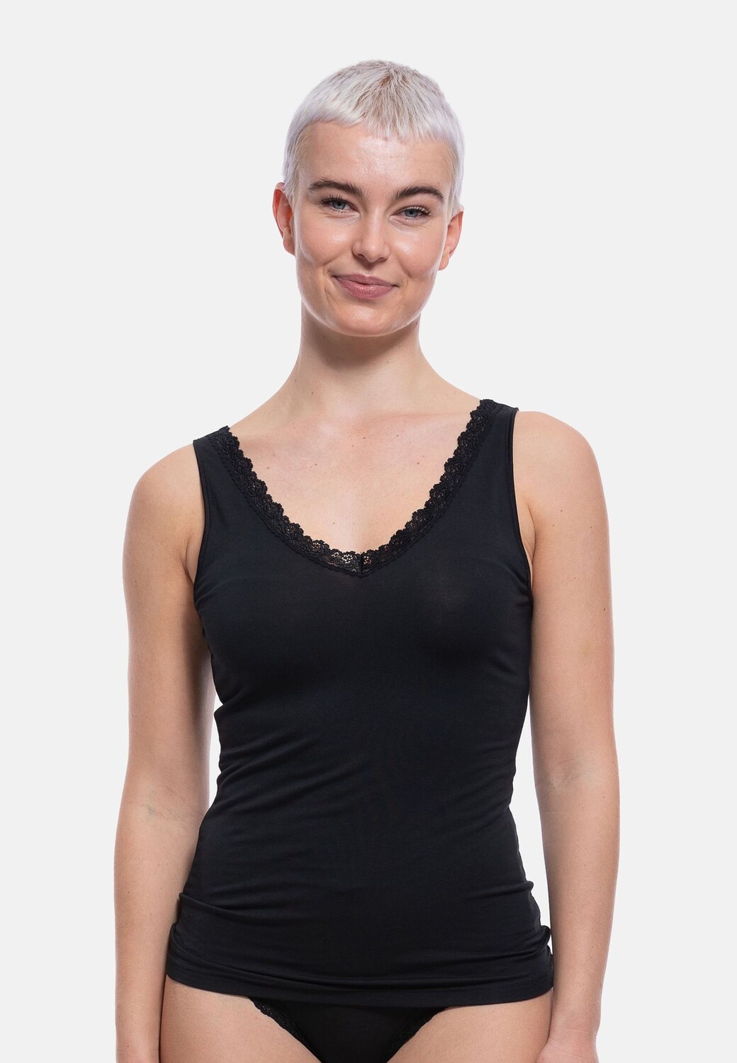 Уютная и мягкая рубашка из серии Cosy. Изготовлен из экологически чистого и ресурсосберегающего материала, который одновременно мягок и приятен для кожи. Романтичное кружево в зоне декольте придает топу особенно женственный вид. С V-образным вырезом и широкими бретелями.