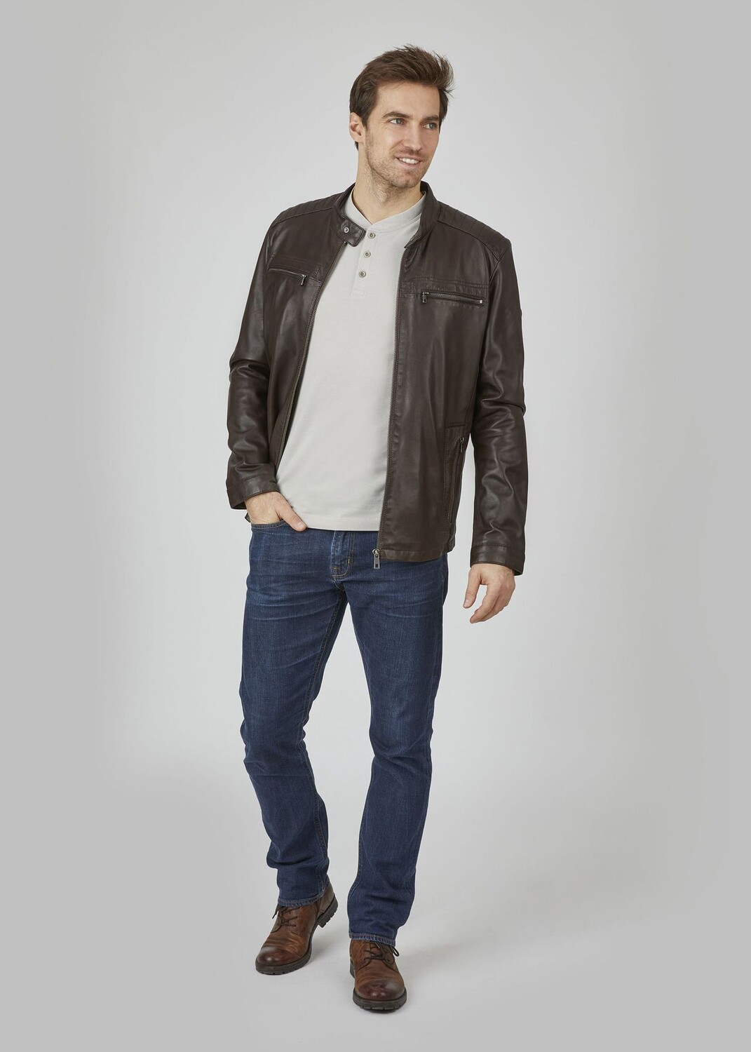 В этой спортивной мужской кожаной куртке от bugatti вы всегда будете в отличном стиле, когда будете в пути. Прямой крой обеспечивает удобную посадку, а мягкая кожа ягненка растительного дубления обеспечивает комфорт при ношении. Отстрочка в области плеч и кнопки на воротнике-стойке, рукавах и талии расставляют модные акценты. Практичные прорезные карманы и карманы на молнии идеально вписываются в дизайн. Эта кожаная куртка станет вашей новой любимой вещью.