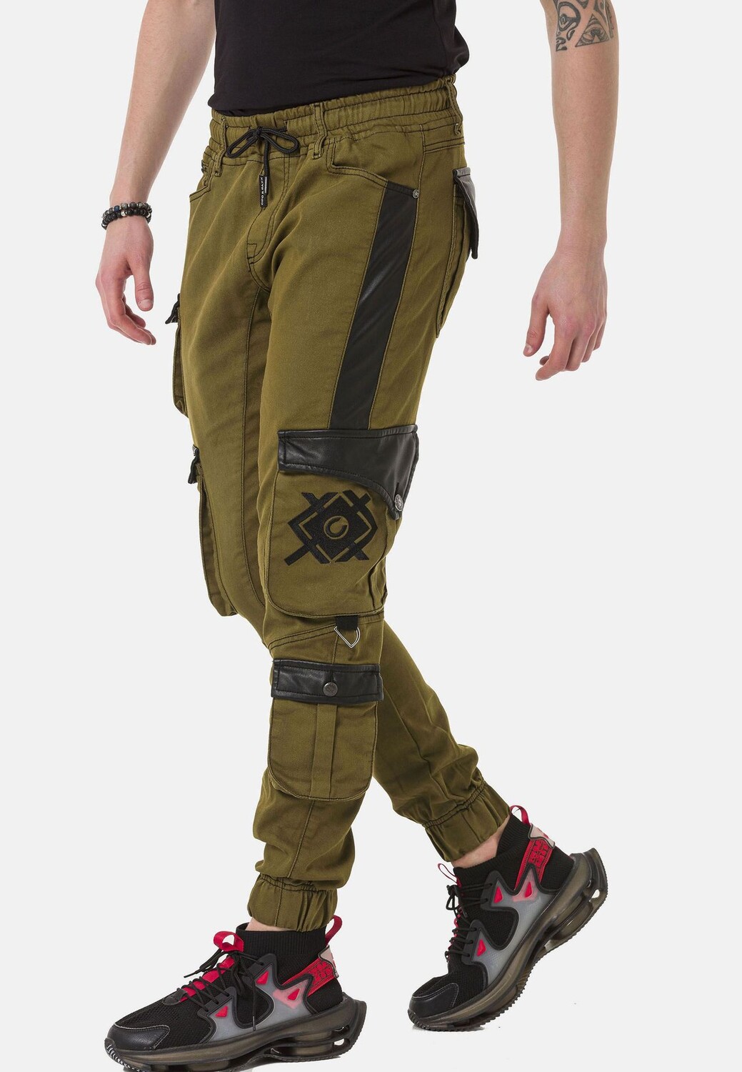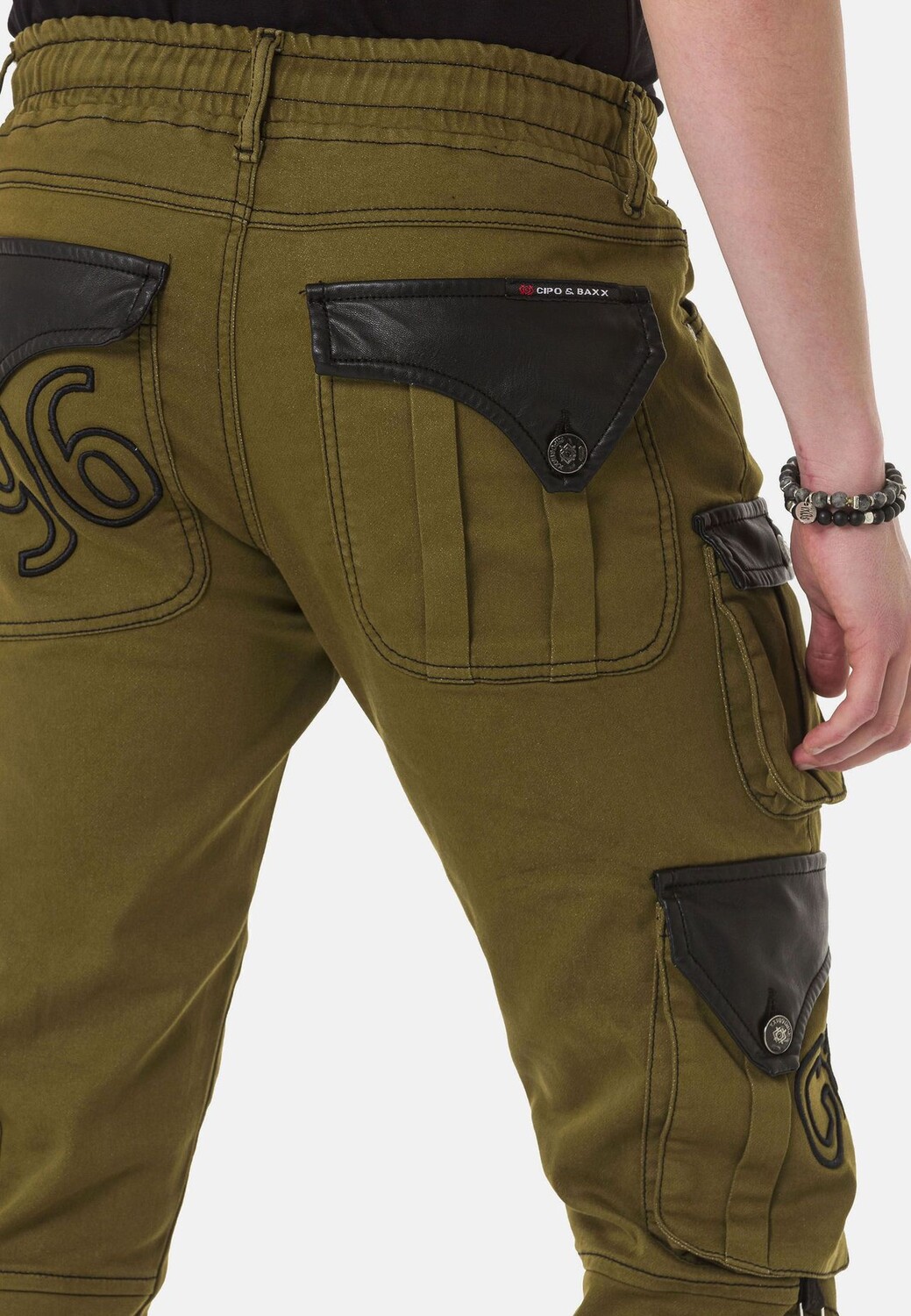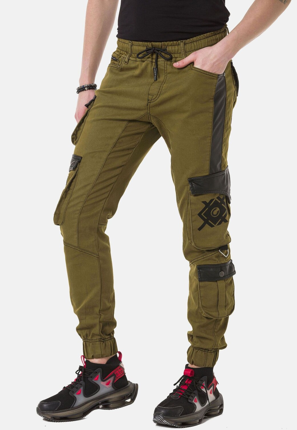 Модные мужские джинсы прямого кроя от бренда Cipo & Baxx имеют отличный крой и поэтому отлично подойдут на любой случай жизни. Модель также впечатляет визуально благодаря своему классному внешнему виду и притягивает взгляды, независимо от того, с чем она сочетается. Размытый рисунок и блестящие элементы, имитирующие кожу, особенно привлекают внимание и делают брюки незаменимыми.