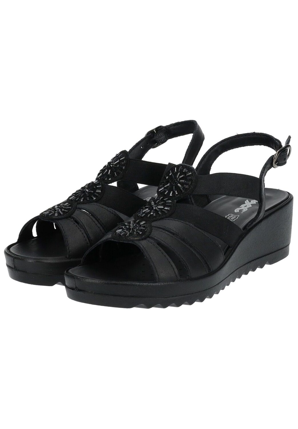 Эти модные босоножки на танкетке из высококачественной замши от IMAC станут настоящим удовольствием для ваших ног. Модель привлекает внимание металлическим дизайном и изысканной отделкой из камня. Тонкая застежка в сочетании с эластичными ремнями обеспечивает индивидуальную посадку и идеальную фиксацию. Мягкая кожаная стелька гарантирует оптимальный комфорт даже в долгие дни.