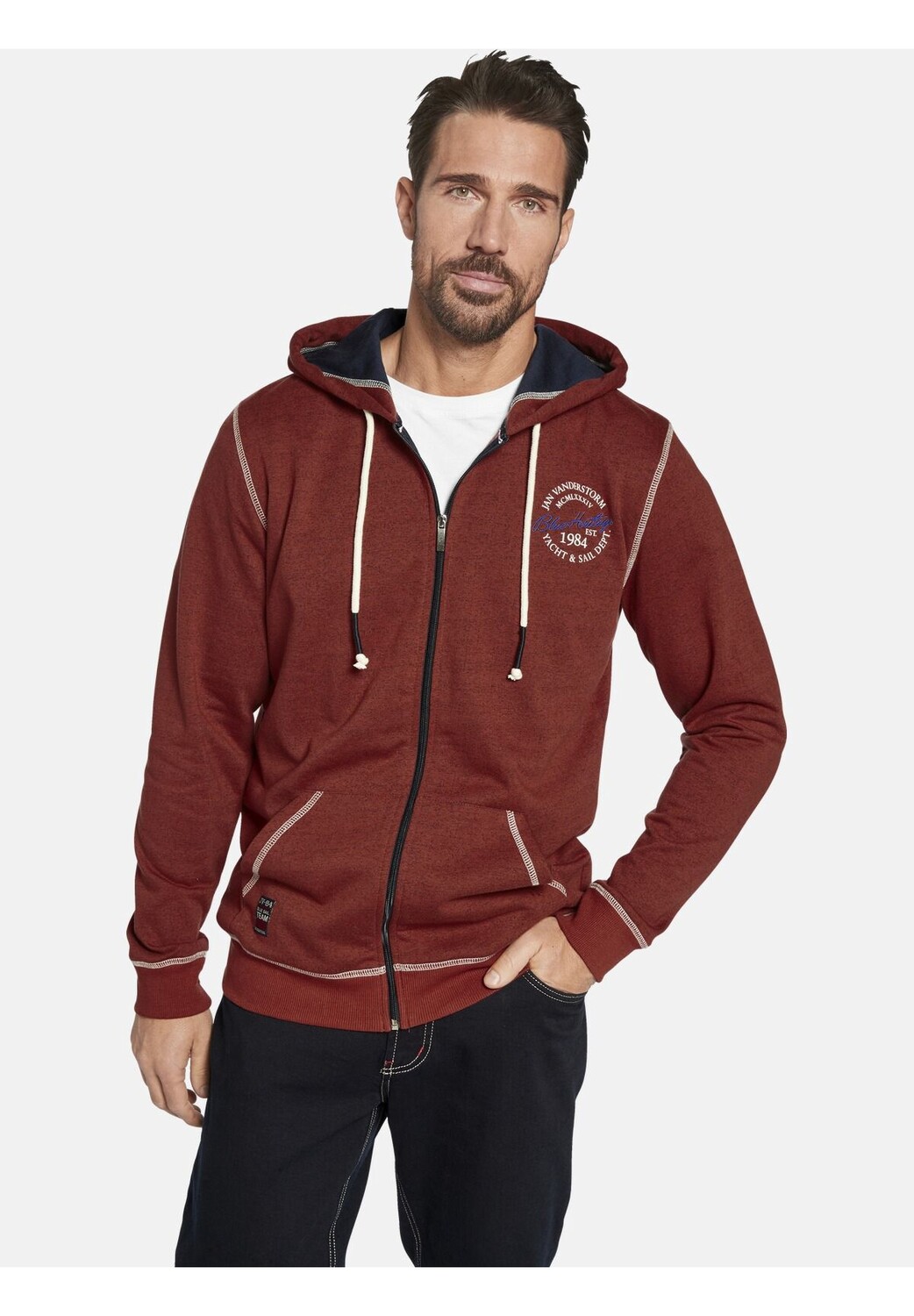 Особенности с декоративными деталями Гладить при низкой температуре красный меланж Стирать с похожими цветами, Стирать наизнанку, Гладить наизнанку Толстовка JOKORA в морском стиле Капюшон на шнуре с завернутыми концами Свободный крой Принт и вышивка на груди Карманы-кенгуру и молния во всю длину Застежка : молния Свойства материала: Легко ухаживать Примечание о размере: Изделие нормальное Покрой: Прямой Вырез: Круглый Длина рукава: Длинный рукав