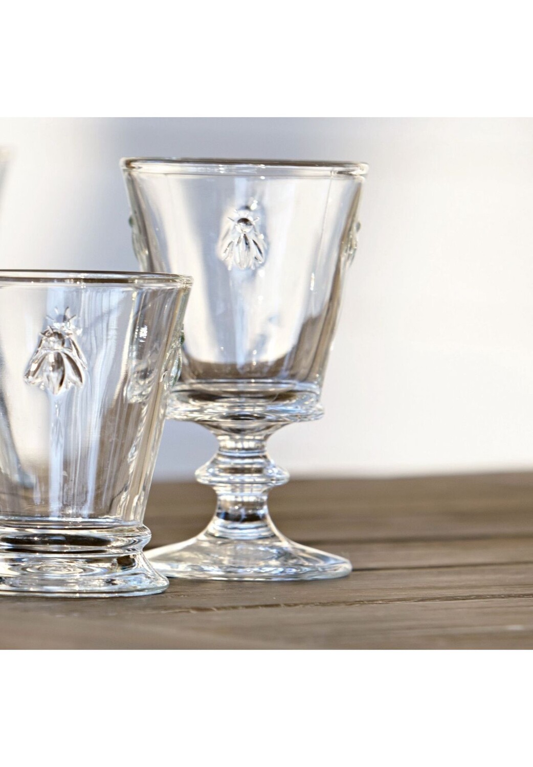 Фужеры чашеобразной формы украшены небольшими узорами в виде пчел. Пчела, геральдическое животное Бонапарта, играет важную роль в геральдике Франции. Поэтому вполне логично, что производитель стекла La Rochère во Франции, основанный в 1475 году, взял этот нетрадиционный герб и использовал его в качестве исторического символа для серии очков. Бокалы для вина чрезвычайно прочны и их можно мыть в посудомоечной машине, что делает их пригодными на каждый день.