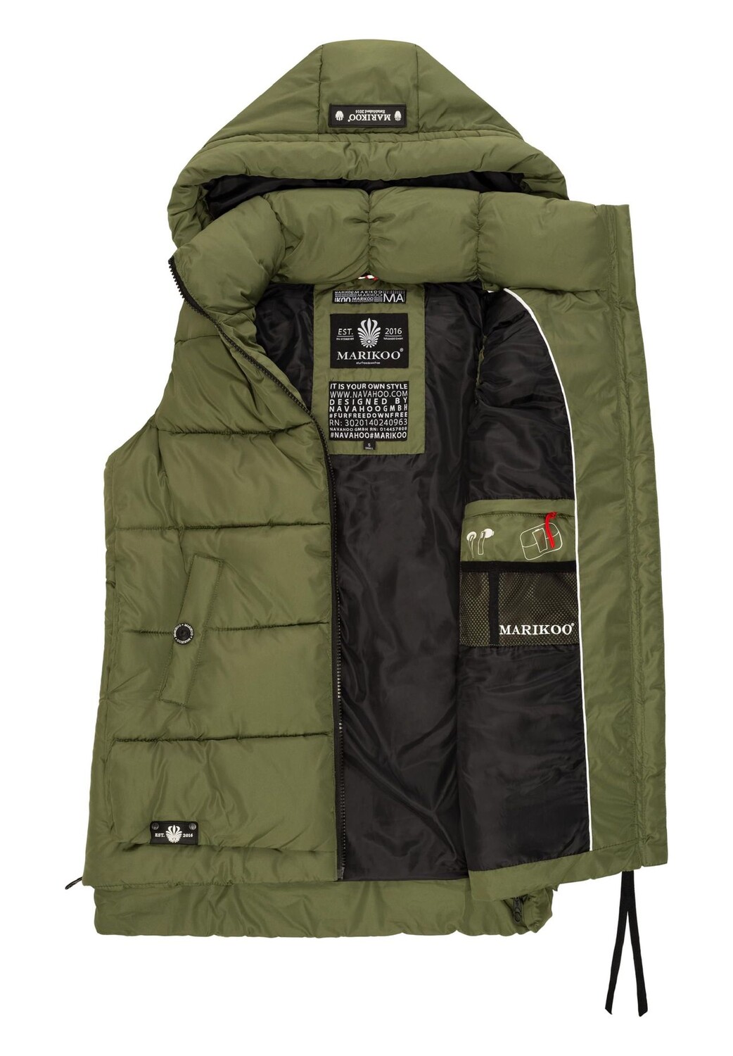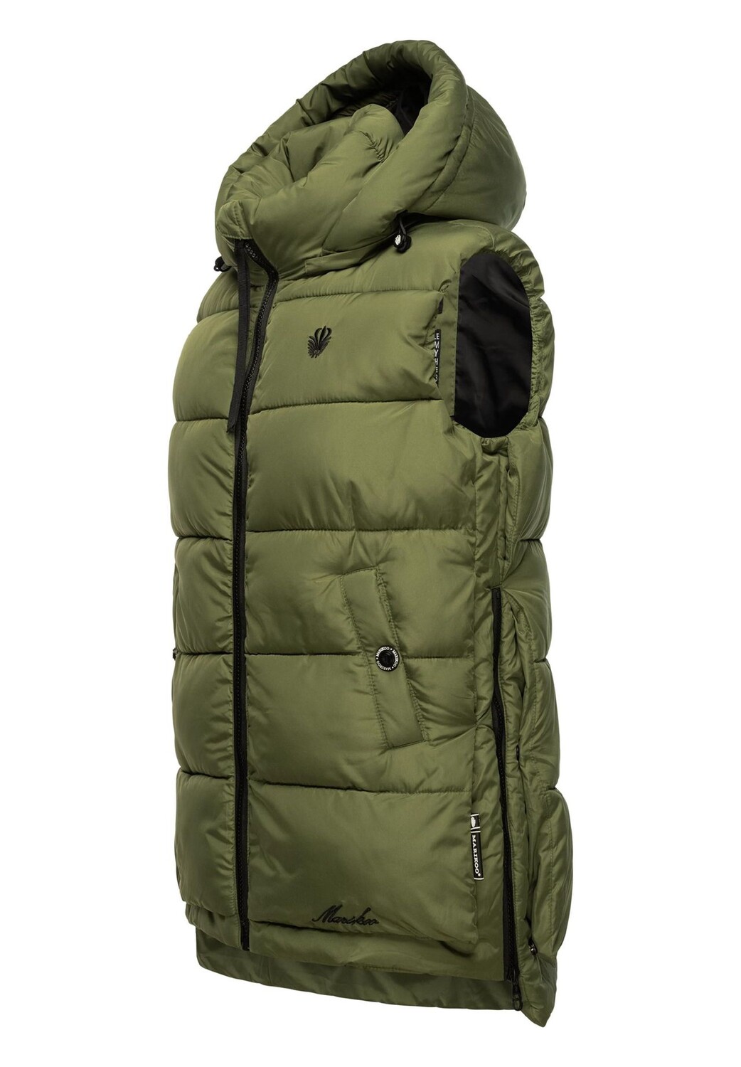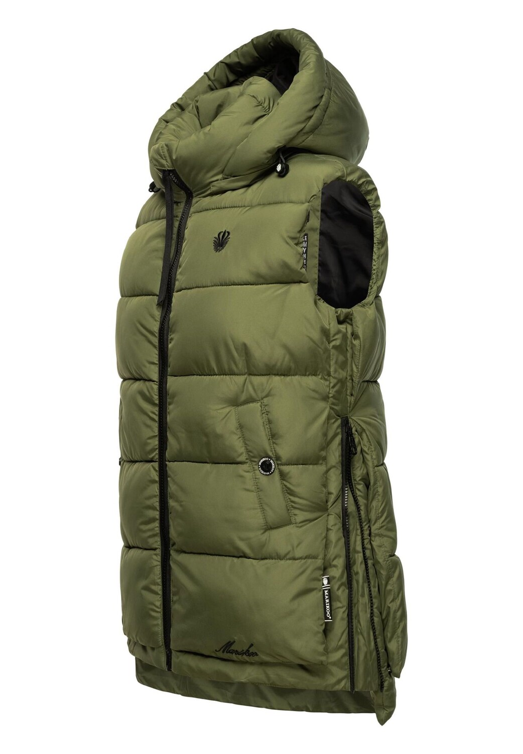 Описание товара: ВИД: Модный женский стеганый жилет без рукавов со сложными деталями и съемным капюшоном от Marikoo — идеален для холодного времени года (осень и зима). МАТЕРИАЛ: Теплый уличный жилет из сверхмягкой водоотталкивающей ткани. материал, мягкая набивка и суперудобство. Комфорт при ношении. ПОДХОД: Легкий, но с теплой подкладкой, жилет для отдыха на открытом воздухе имеет свободный крой, его можно удобно носить со свитером под ним, верхняя часть длиной до бедер и немного длиннее сзади. ДЕТАЛИ: Стеганая куртка с модной ленты на застежке-молнии, стильные боковые кнопки и молнии (регулируемые по ширине), а также внешние карманы на подкладке для предотвращения холода рук. Этот стильный женский жилет — настоящий универсал для прохладных дней — идеально подходит для прогулок с собакой, походов, фестивалей или прогулок по городу. Стеганый жилет на теплой подкладке с капюшоном от Marikoo Идеально подходит для прохладных осенне-зимних дней. Высочайшее качество, высокое качество изготовления. Модная лента в качестве молнии.