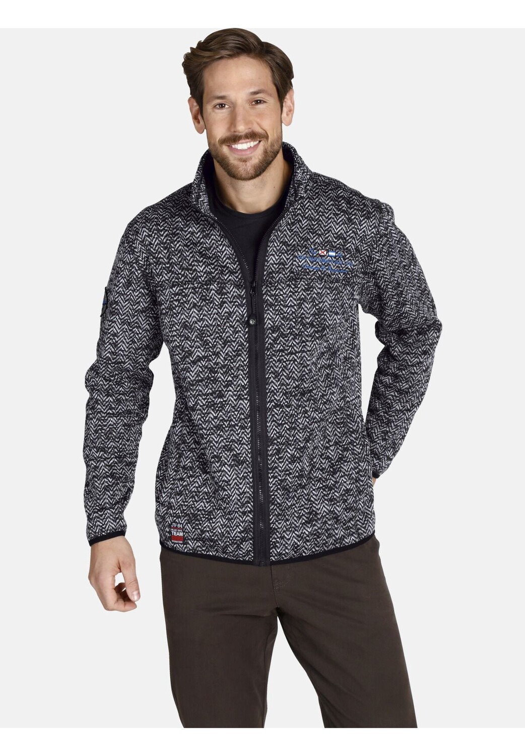 ЯН ВАНДЕРСТОРМ — ваш эксперт по мужской моде больших размеров. В куртке KOLMUND есть все, что вы можете желать от надежной вязаной флисовой куртки: мягкий материал, удобный в носке и, кроме того, мы добавили необычный зигзагообразный узор. Это придает куртке социально приемлемый вид. Будучи вязаной флисовой курткой, она еще и воздухопроницаемая. Узкие и гибкие манжеты удерживают куртку на месте. Маленький компас на молнии указывает путь. 100% полиэстер. Машинная стирка.