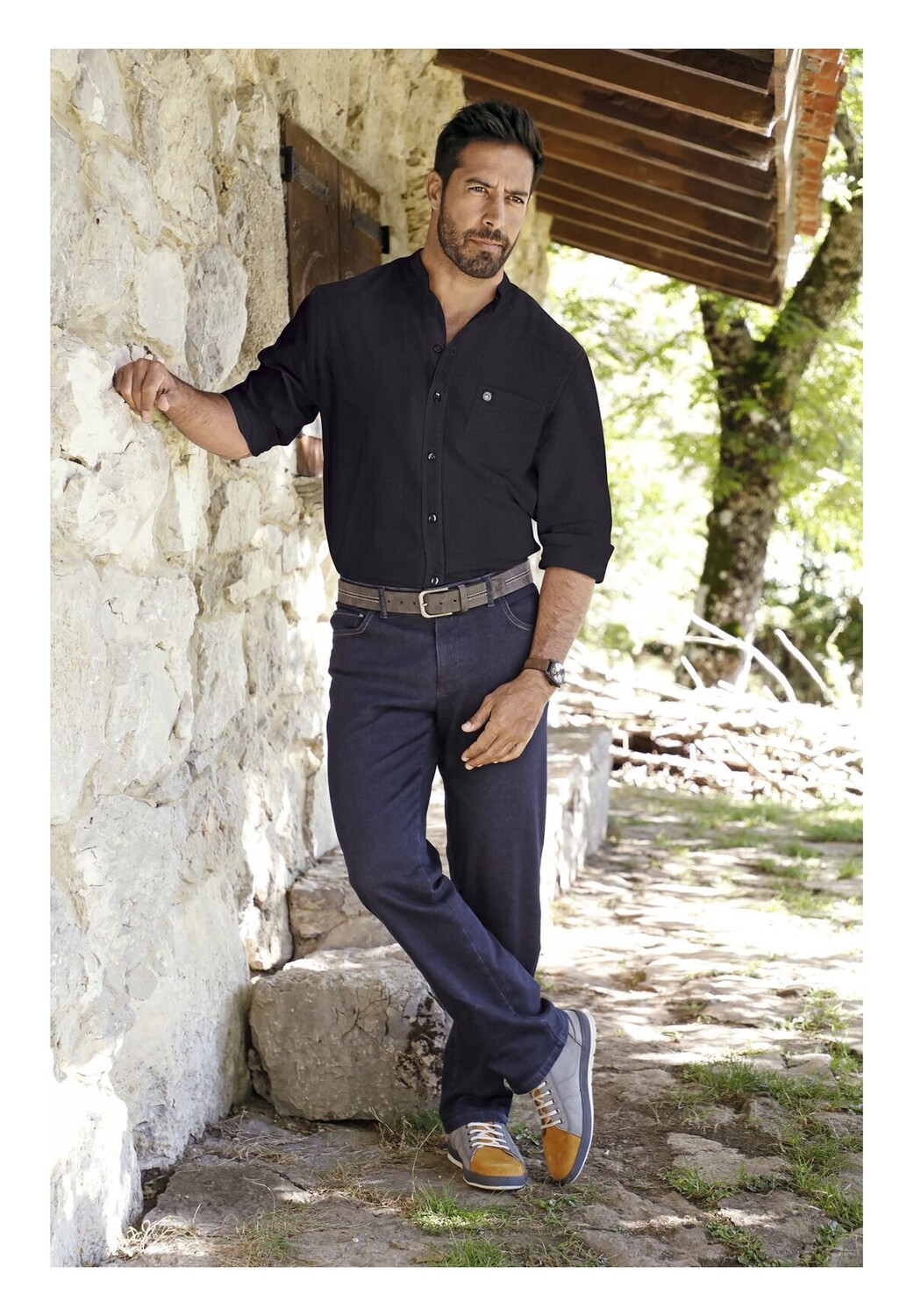 ЯН ВАНДЕРСТОРМ — ваш эксперт по мужской моде больших размеров. Необычно и просто: рубашка KALLU очаровывает элегантным льняным внешним видом и коротким воротником-стойкой. Эта рубашка – идеальный вариант для теплых летних вечеров. Он кажется воздушным и легким. Длинные рукава с прорезями на пуговицах можно подвернуть. Цветных акцентов всего два: манжеты с петлей контрастного цвета и вторая пуговица, пришитая к планке контрастного цвета. Накладной нагрудный карман и удобный крой со слегка закругленным краем делают рубашку идеальной. 100% хлопок. Машинная стирка.
