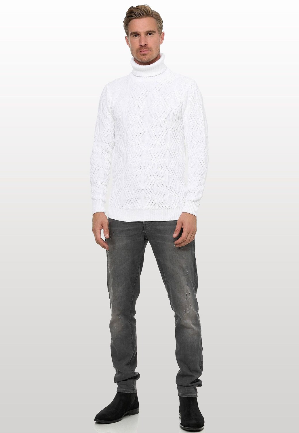 Модный мужской свитер с высоким воротником от Rusty Neal впечатляет своим высочайшим качеством, удобен в ношении и идеально сидит по фигуре. Он изготовлен из мягкого, качественного и эластичного хлопка, что гарантирует абсолютно комфортную посадку. Благодаря качественному исполнению материалов после стирки цвет не теряется, а усадка свитера больше не проблема! Эта универсальная модель гарантирует стильный внешний вид, как при элегантном ношении в офисе, так и в повседневной жизни днем. Он впечатляюще показывает, насколько современным и в то же время вневременным может быть свитер. Рост модели 1,85 м, вес около 80 кг, размер M (средний).