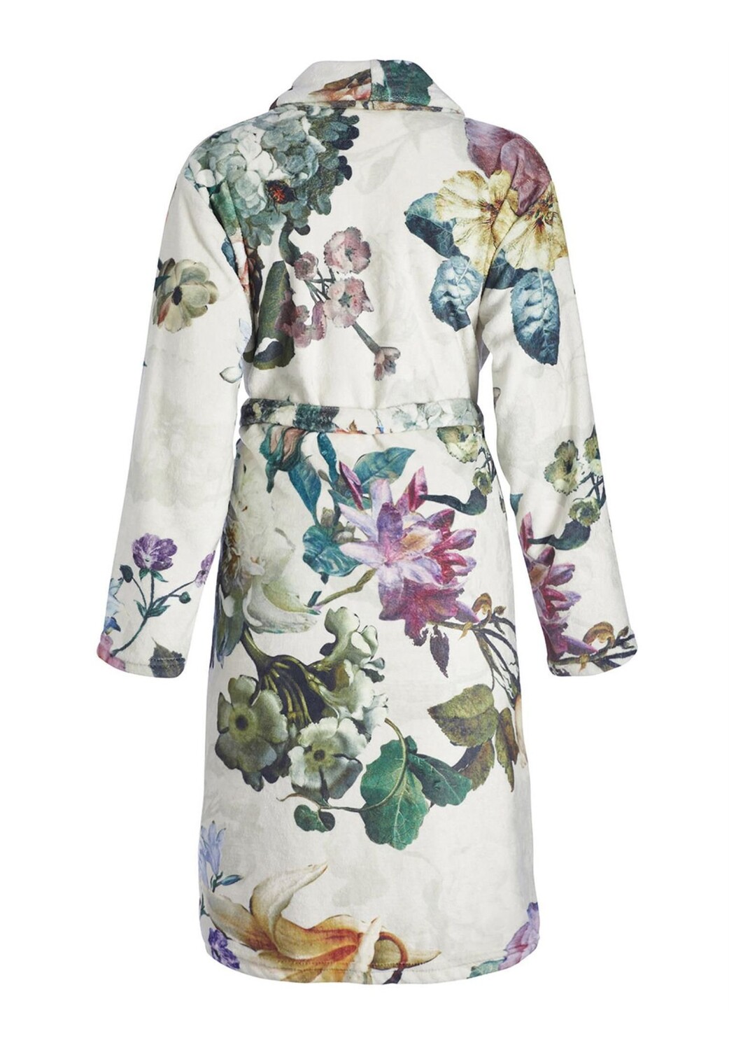 Халат цвета экрю имеет свежий вид и живописный цветочный принт.