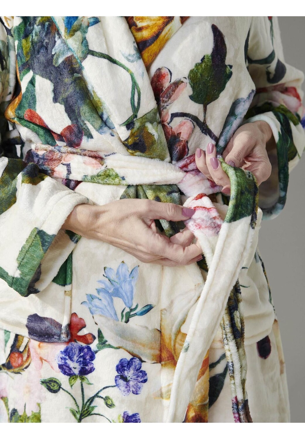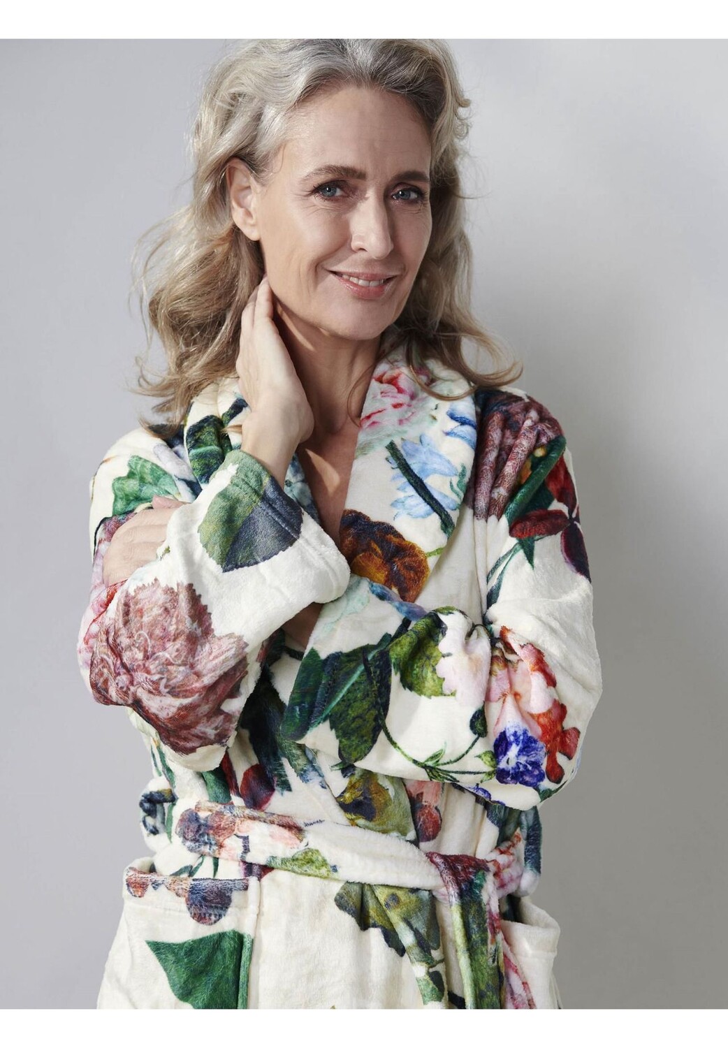 Невероятно мягкий и теплый халат Fleur от ESSENZA притягивает взгляд своими красивыми и живописными цветами. Сделайте каждый день ленивым воскресеньем. Чрезвычайно мягкая ткань халата изготовлена ​​из 100% полиэстера.