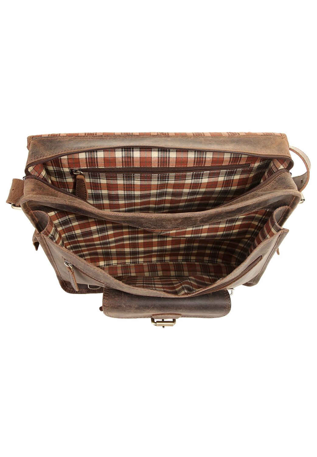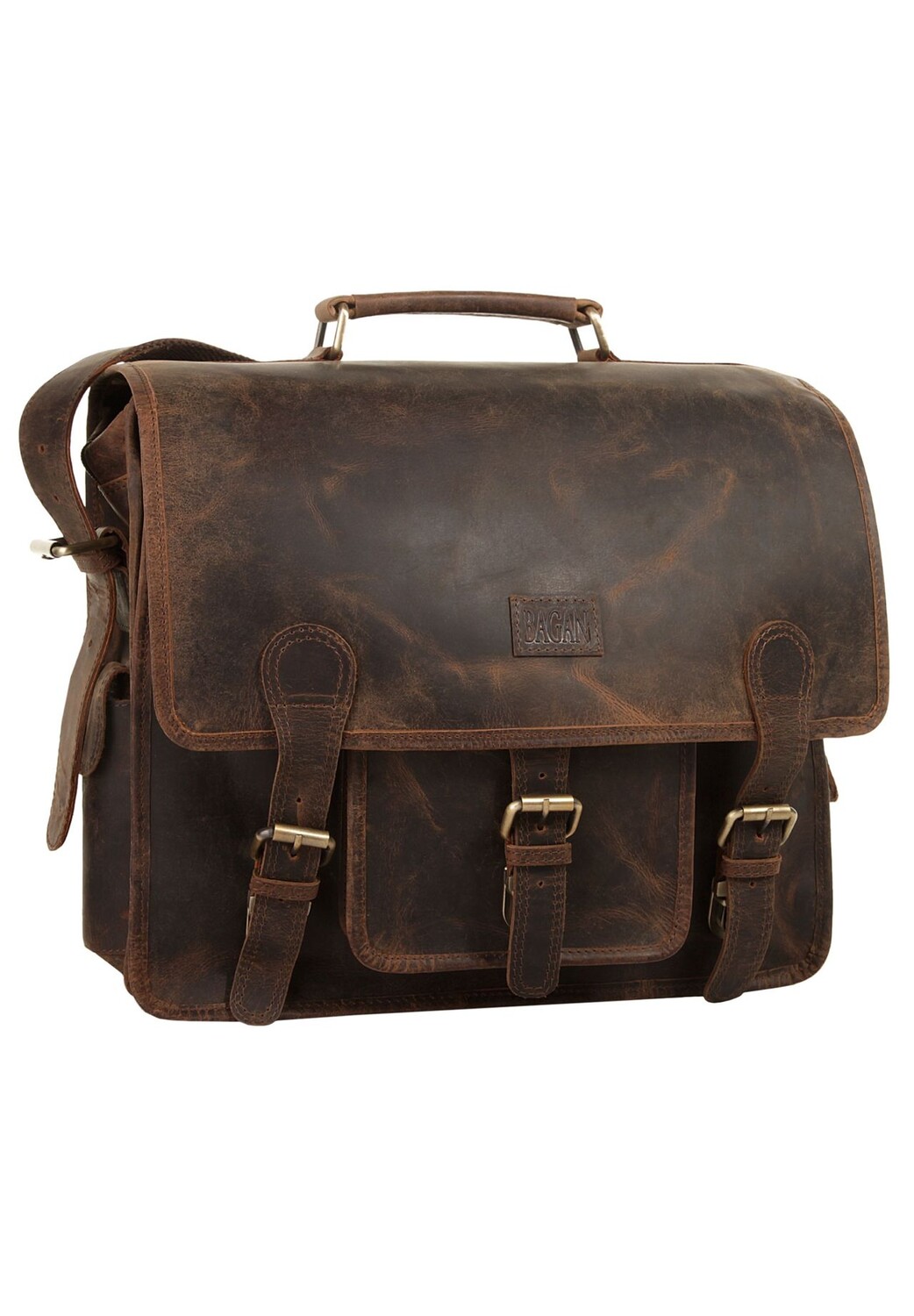 Кожаный портфель от Bagan придает индивидуальность классической офисной сумке! Кожа с открытыми порами придает сумке деревенский и непринужденный винтажный вид. Основное отделение подходит для папки А4 или других важных документов. Застежка-молния и дополнительный клапан с двумя замками сохранят содержимое сумки в сохранности. Ручка для переноски и съемный плечевой ремень позволяют носить кожаный портфель по-разному. * 100% натуральная кожа * 1 основное отделение на молнии и клапане с замками * 1 внутреннее отделение на молнии * 1 переднее отделение с замком * 1 ручка для переноски * 1 регулируемый плечевой ремень с подушкой для переноски