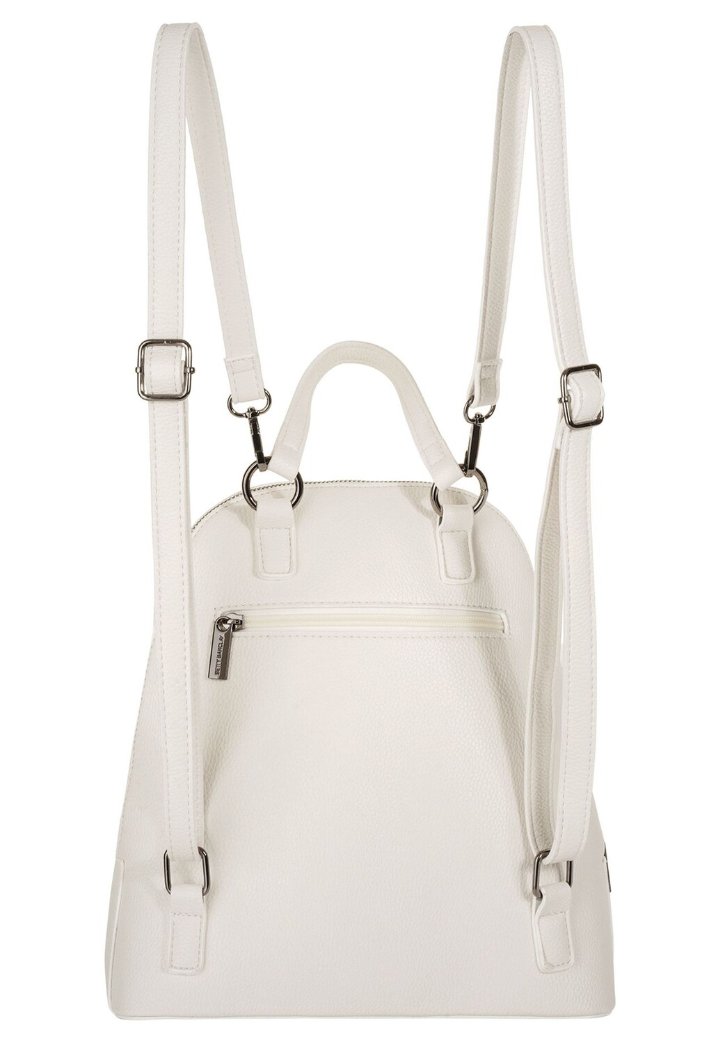 Рюкзак Betty Barclay отличается элегантным минимализмом. Четкие формы и матовый материал, дополненные и контрастирующие с блестящими металлическими элементами, придают городскому рюкзаку характерный вид. В основном отделении можно разместить смартфон, ключи и кошелек, а также небольшую бутылку с водой и текущие материалы для чтения. Нижние заклепки обеспечивают надежную стойку и защищают нижнюю часть от износа. * 1 основное отделение на молнии * 1 накладной внутренний карман * 1 внутренний карман на молнии * 1 внутренний карман для смартфона (до 6 дюймов) * 1 передний карман на молнии * 1 задний карман на молнии * 1 ручка для переноски * 1 лямки с плавной регулировкой (50 шт.) см - 90 см) * тонкий логотип - нанесение спереди * заклепки снизу для устойчивой стойки * особенно легкий