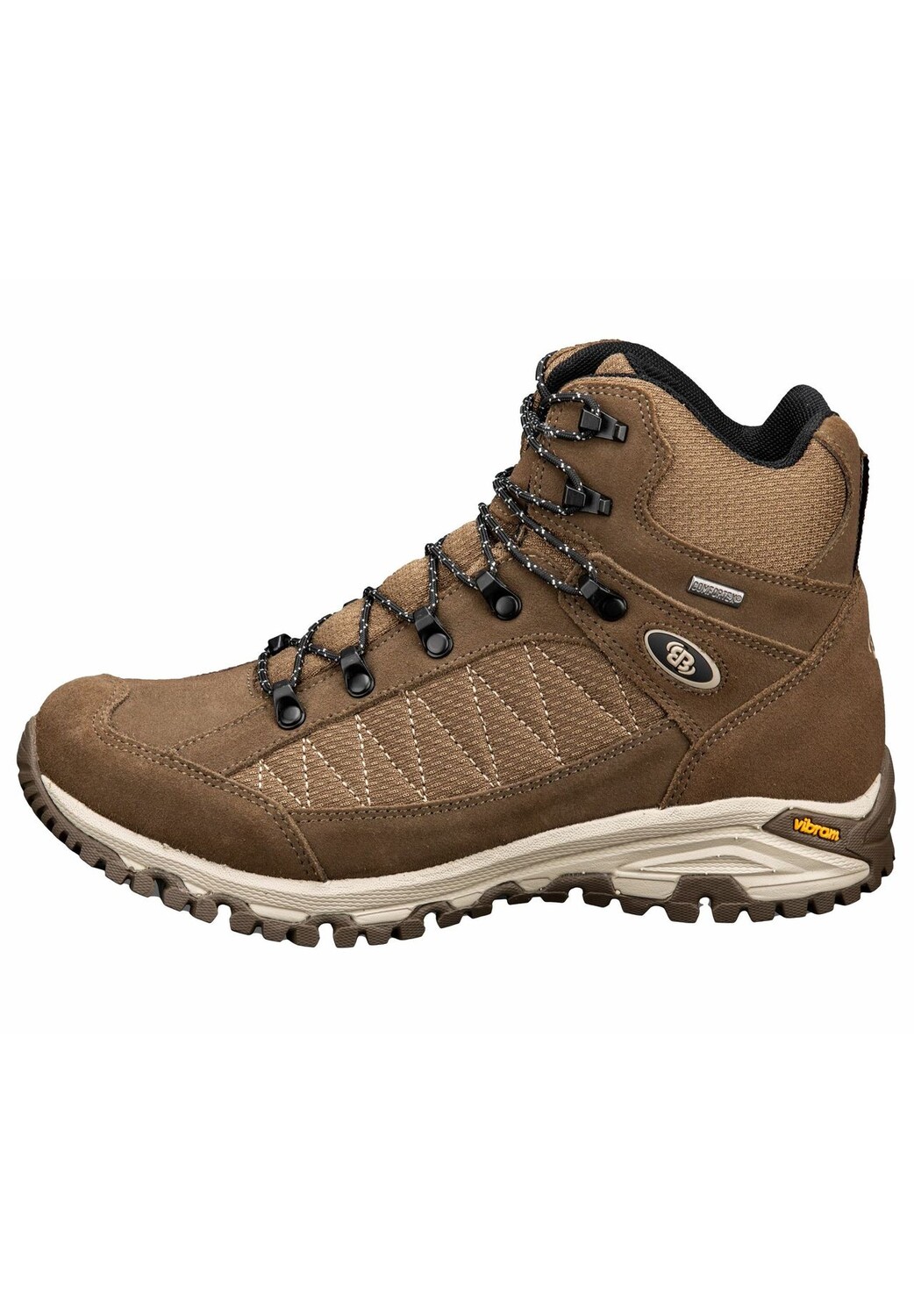 Сапоги Mount Kandu High от Brütting; Кожаный верх с нейлоновыми вставками; шнуровка с фиксирующими крючками обеспечивает универсальность ношения и надежную фиксацию; водонепроницаемая и дышащая климатическая мембрана Comfortex сохраняет ноги сухими снаружи и внутри; удобная текстильная подкладка; сменная текстильная стелька Ortholite; Стабильная и нескользящая подошва Vibram с хорошим протектором для всех типов местности.