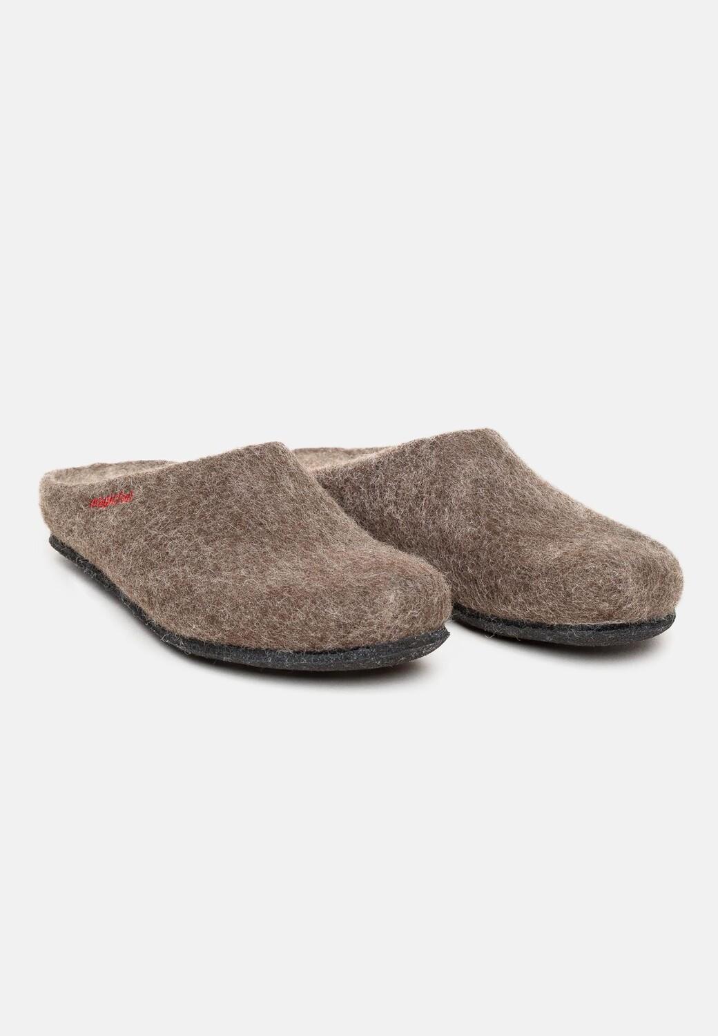 Удобные фетровые тапочки из 100% чистой мериносовой шерсти. Шерсть валяют в Тирольских Альпах. Благодаря бесшовной обработке стопа окружена исключительно натуральной шерстью, что создает здоровый климат для ног. Войлочная подошва обработана натуральным латексом и поэтому не скользит и не пропускает воду. Войлок и подошва имеют анатомическую форму и обеспечивают идеальную посадку. Войлочная подошва пропитана натуральным латексом и поэтому не скользит и не пропускает воду.