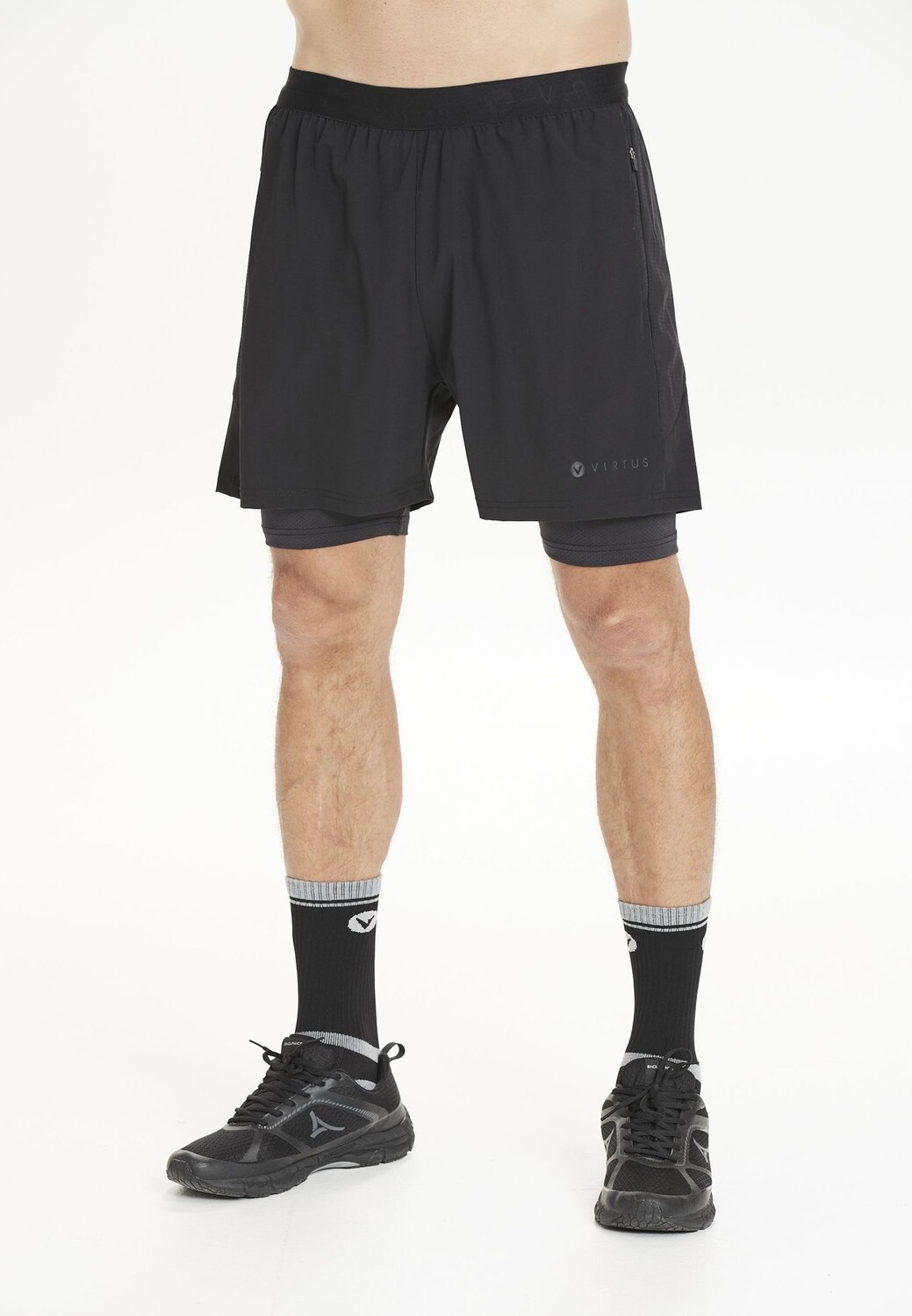 Особенные характеристики без подкладки Карман(ы) на молнии, боковой карман(ы) без теплоизоляции подходит как обычно Мужские шорты 2-в-1 от Virtus Антистатические, тянущиеся в четырех направлениях, из полиэстера и эластана Со светоотражателями и внутренними колготками из воздушной сетки Дышащие и быстросохнущие