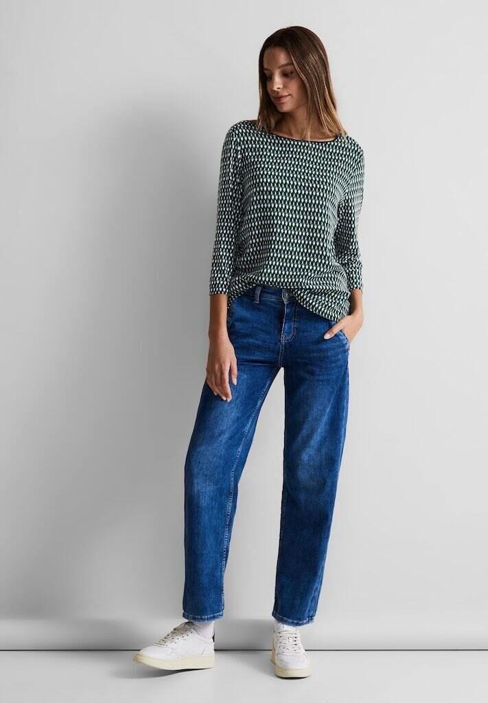 Женская рубашка в стиле Эви от Street One с рукавами 3/4 и вырезом-лодочкой – незаменимая вещь для следящих за модой женщин. Двухцветный минималистичный узор придает этой женской рубашке модный вид. Комфортное сочетание материалов обеспечивает удобство ношения и делает эту рубашку идеальным компаньоном во многих случаях. Рубашка минимальная выкройка, материал микс, подводная лодка, размеры выреза для европейского размера 38 примерно: длина 63 см, обхват груди 102 см, ширина низа 108 см. Материал: 95 % вискоза, 5 % эластан.