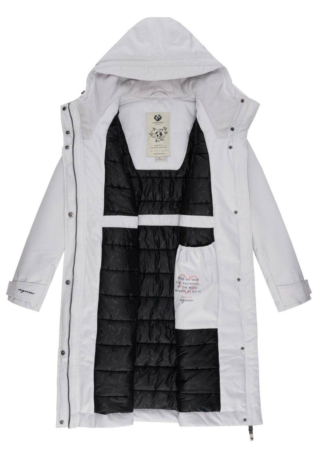 Описание товара: ВИД: Экологичная длинная женская зимняя куртка от Ragwear из переработанного полиэстера, капюшон и воротник на подкладке из мягкого флиса, практичный брелок для ключей на правом кармане куртки, 100% веганское производство. ЭКО. МАТЕРИАЛ: Пальто из переработанного, дышащего, ветро- и водоотталкивающего наружного материала (водяной столб 11 000 мм), бархатистая мягкая подкладка и стеганая внутренняя часть. ПОДХОД: женская парка идеальной длины до колен, с теплой подкладкой, сохраняющая фигуру. - более удобный капюшон, регулируемый по ширине с помощью кулиски и удлиненный спереди - отлично защищает от дождя. ДЕТАЛИ: Теплые внутренние ребристые манжеты сохраняют тепло, а множество карманов обеспечивают достаточно места для хранения вещей, большая свобода движений благодаря застежкам-молниям на куртке. боковая часть куртки (проходные вентиляционные отверстия) и двусторонняя молния.