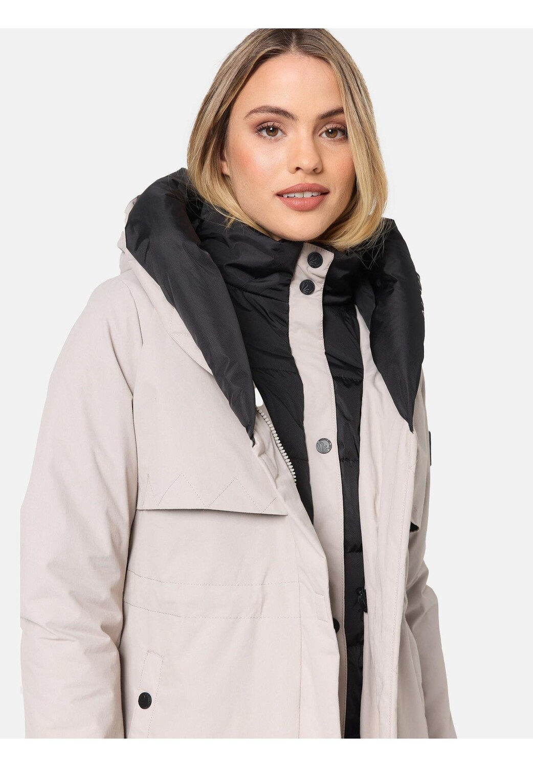 Описание товара: СМОТР: Стильное женское зимнее пальто с контрастными цветными элементами, высоким воротником и большим капюшоном на подкладке от бренда Navahoo – идеальный спутник в холодные дни осени и зимы! МАТЕРИАЛ: Нескользящий, водонепроницаемый и ветронепроницаемый внешний материал, бархатистая мерцающая внутренняя подкладка парки и мягкие ребристые манжеты на концах рукавов обеспечивают идеальную защиту от ветра и непогоды. ФИКСАЦИЯ: Длинная зимняя куртка прямого кроя длиной до до колен, посадку можно регулировать благодаря внутреннему шнурку на талии, который можно регулировать и комбинировать с любым стилем. ДЕТАЛИ: Многочисленные внутренние и внешние карманы, которые согреют ваши руки и обеспечивают достаточно места для хранения всех ценных вещей, внутренняя молния с кнопкой Защитная планка и внешняя двусторонняя молния с магнитом. - Защитная планка с клапаном отталкивает ветер.