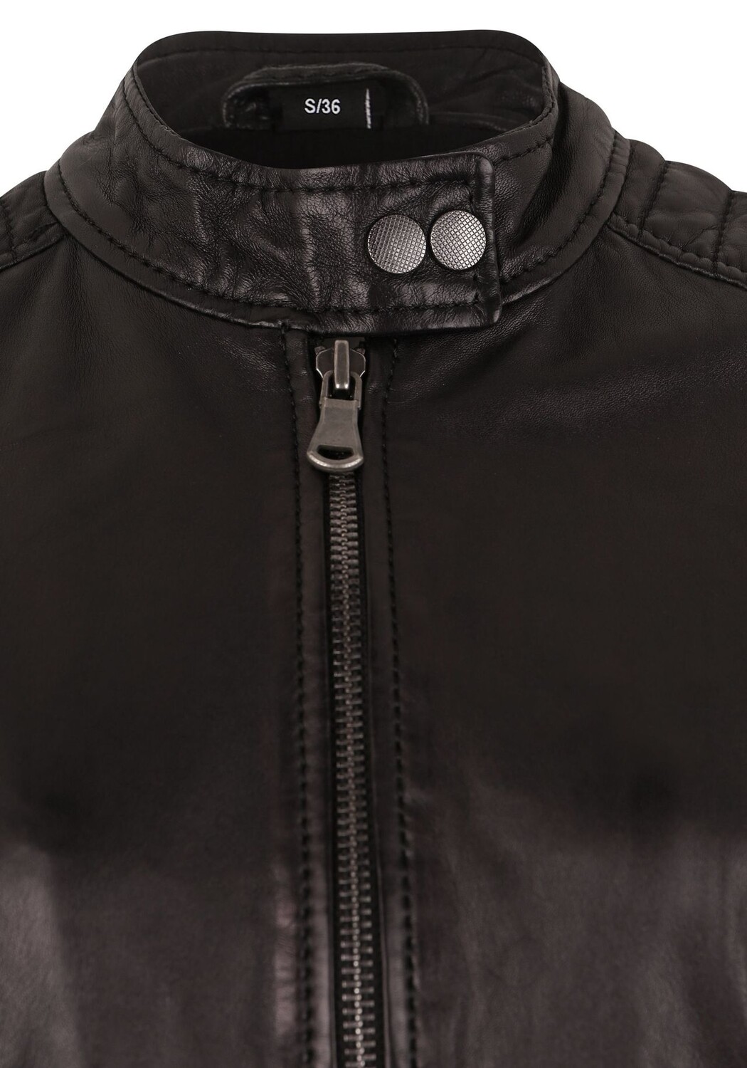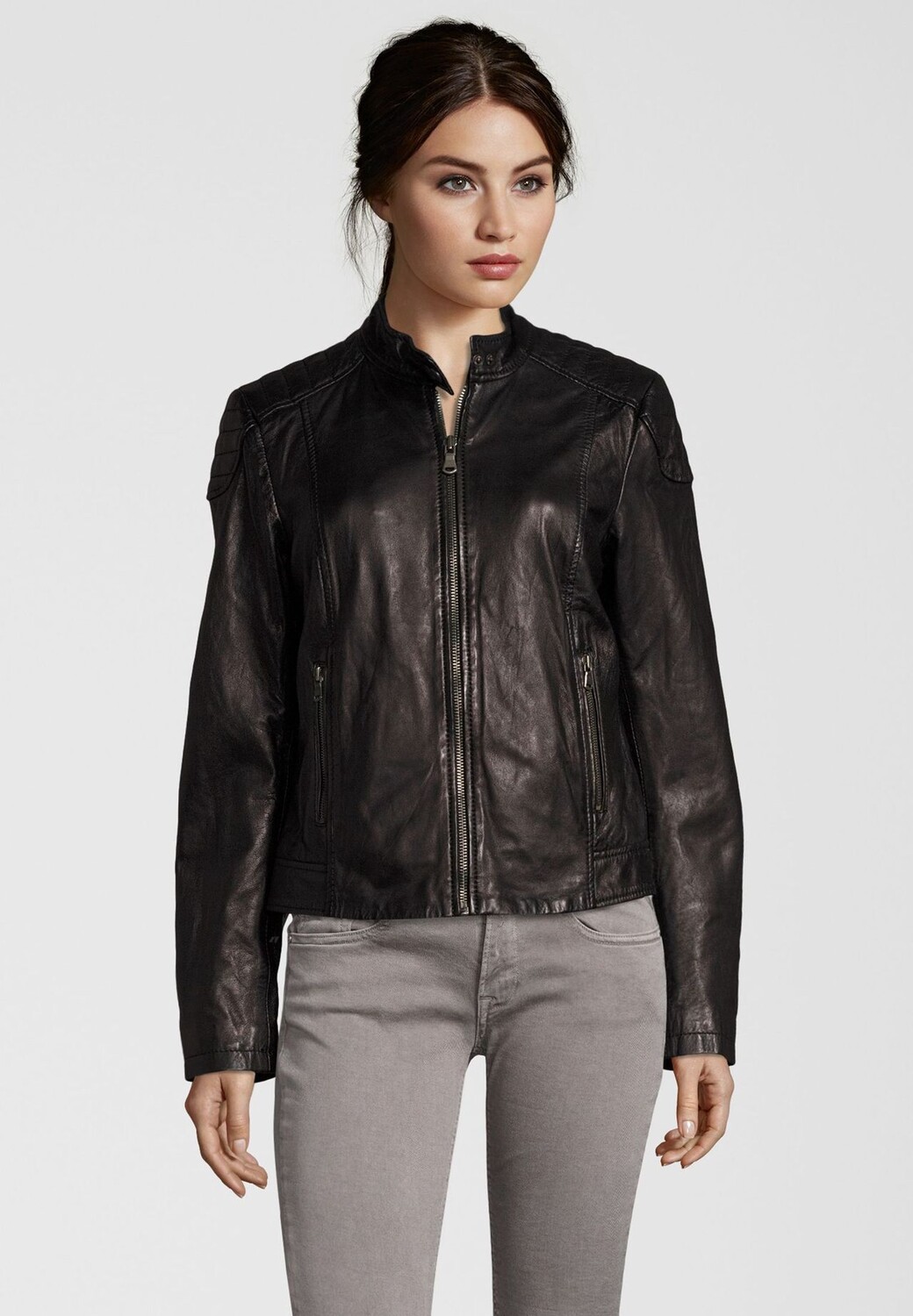 Кожаные куртки просто никогда не выходят из моды! 7eleven представляет особенно привлекательную модель для женщин, которая привлекает внимание своим стильным и модным дизайном. Куртка изготовлена из высококачественной кожи и очень удобна в ношении. Модель, ориентированная на моду, заканчивается выше бедер и совершенно проста, имеет застежку-молнию, два внешних кармана и воротник на пуговицах — стильный минималистичный образ, который впечатляет. Чистить куртку можно только специальным средством для чистки кожи.