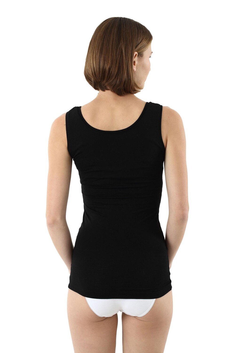 Описание товара: Женская майка ALBERT KREUZ из тончайшего дышащего микромодала Light без рукавов с глубоким круглым вырезом черного цвета. Легкая, как перышко, майка изготовлена ​​с особой тщательностью из бархатисто-мягкого микромодала. который впитывает влагу и распределяет ее по большей площади, не оставляя пятен на верхней одежде. Благодаря низкому содержанию эластана рубашка идеально адаптируется к телу. Стандартные майки часто имеют неподходящий вырез и не закрывают бюстгальтер должным образом. Под блузкой также выделяются узкие бретели. Женская майка от ALBERT KREUZ предлагает идеальное решение. Глубокий вырез и широкие бретели с плоскими необъемными швами точно прикрывают линию бюстгальтера. Верх по-прежнему срезан достаточно высоко под мышкой, чтобы надежно впитывать влагу.