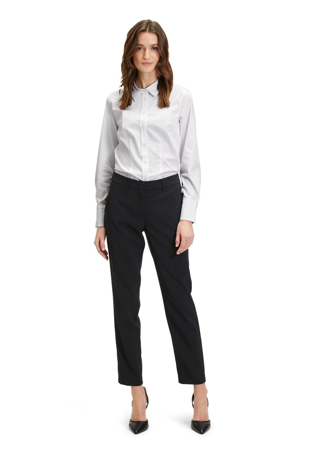 Это может стать вашим новым любимым произведением! Рубашка Betty Barclay — универсальная вещь с длинными рукавами и классическим воротником. Он простой и имеет удобную посадку. Блузка придает любому наряду непринужденный и непринужденный вид. Благодаря планке на пуговицах его можно носить открытым или закрытым по желанию. Вечный и стильный спутник на разные случаи жизни.