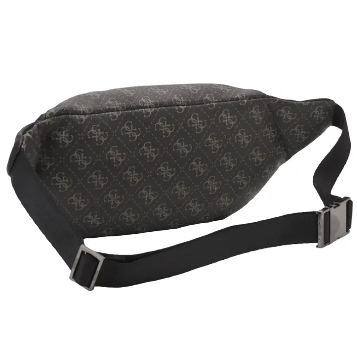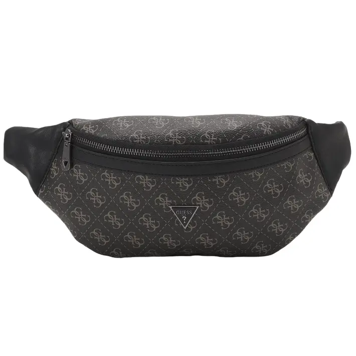 Сумка поясная с фирменным принтом Guess. Одно отделение, застежка на молнию, цвет: черный