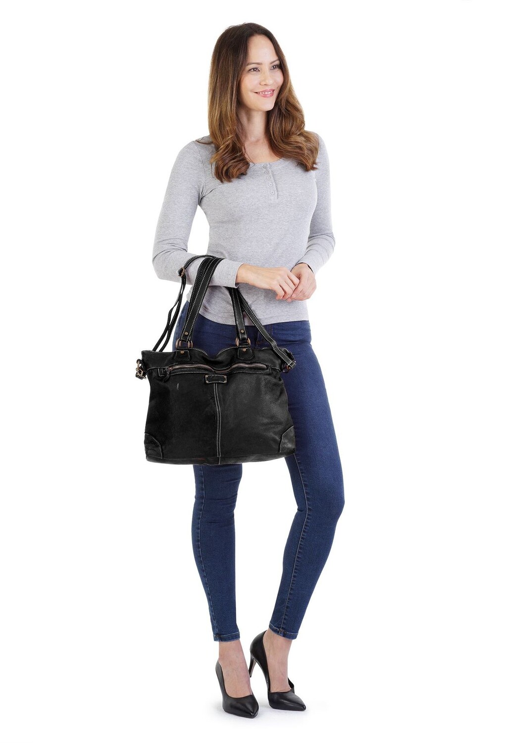 Описание товара: Если вы ищете вместительную сумку для повседневной жизни, вы найдете ее здесь! Кожаный шопер от Cluty идеален для походов по магазинам и покупок. В просторное основное отделение поместится все, что душе угодно. Благодаря своим размерам и нейтральному дизайну шопер универсален. Вы также хорошо оснащены им на работе или в свободное время. В зависимости от ситуации вы можете выбирать между регулируемым и съемным плечевым ремнем и ручками для переноски. * Сделано в Италии * Изготовлен из 100% коровьей кожи * 1 основное отделение на молнии * 2 внутренних кармана * 1 внутренний карман на молнии * 1 задний карман на молнии * 2 ручки для переноски * плавно регулируемый съемный плечевой ремень (60–115 см)