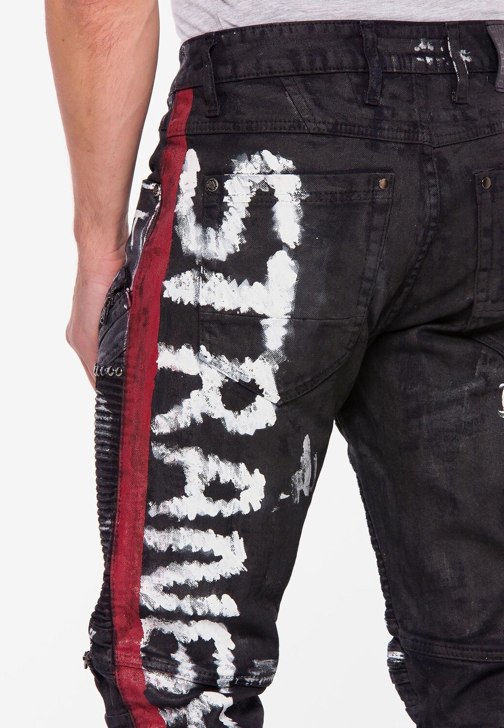 Модные мужские джинсы прямого кроя от бренда Cipo & Baxx имеют отличный крой и поэтому отлично подойдут на любой случай жизни. Он изготовлен из прочного материала и удобен в ношении благодаря производству из чистого хлопка. Она становится изюминкой благодаря классным надписям по всей поверхности, заклепкам и декоративным швам, которые сразу привлекают внимание и делают модель особенной.