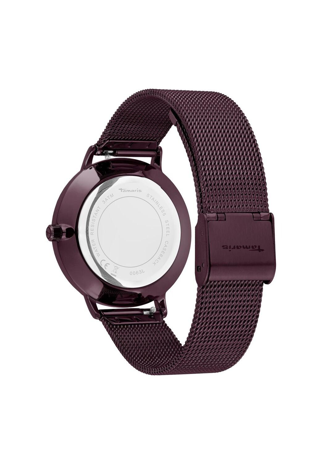 Особенные характеристики Красивые женские часы Tamaris впечатляют своим классическим, но современным внешним видом Полированный металлический корпус Ø 36 мм , устойчивое к царапинам минеральное стекло, водонепроницаемость проверена до 3 бар/атм Миланский ремешок из высококачественной нержавеющей стали с раскладывающейся застежкой Легко читаемый циферблат и надежный кварцевый механизм Упаковано в оригинальную подарочную коробку Tamaris Цвет: фиолетовый Цвет дисплея: фиолетовый Целевая группа: женщины Цветные часы: Браслет: фиолетовый, корпус: серебро Материал часов: Браслет: нержавеющая сталь, корпус: металл, задняя крышка: металл Тип часов: Аналоговые часы