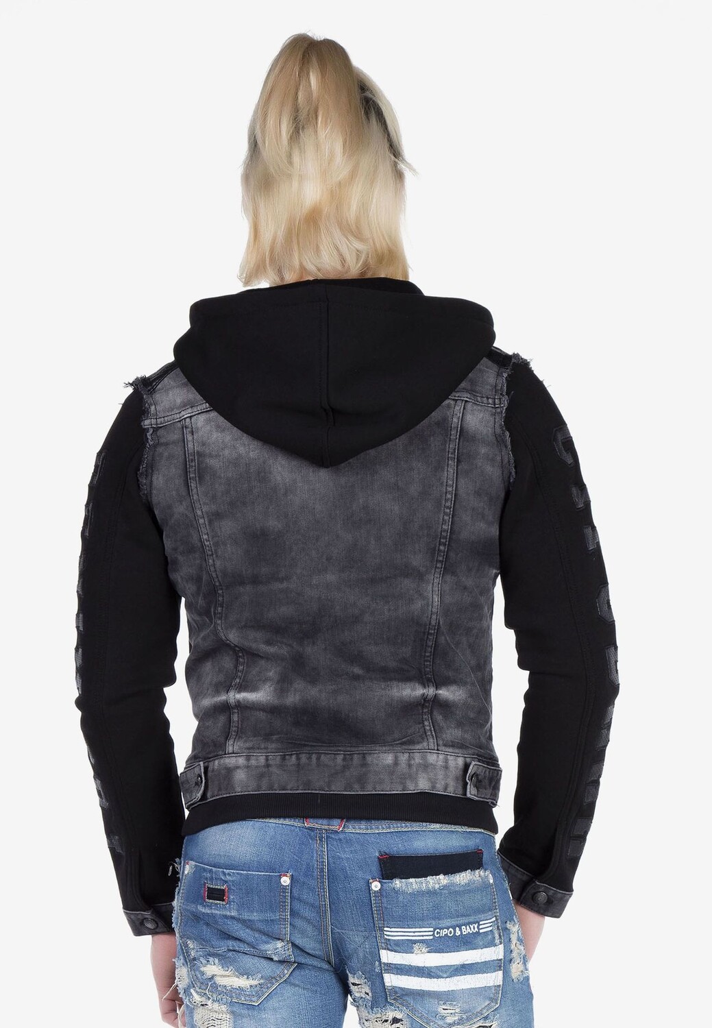 Повседневная куртка, являющаяся одним из трендов сезона, выделяется благодаря конструкции с капюшоном и деталями толстовки. Украшенная потертым денимом, деталями в байкерском стиле, пуговицами и молниями, она станет идеальным дополнением к современному уличному стилю. Их полностью натуральная структура обеспечивает комфортное использование в течение всего дня. Футболки и джинсы с принтами Cipo & Baxx позволяют создавать комбинации, отражающие ваш оригинальный стиль — деним из 100% хлопка.