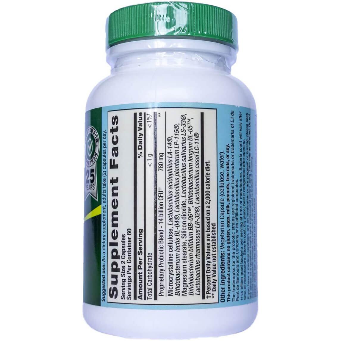 Содержит 8 различных штаммов пробиотиков, в том числе Lactobacillus acidophilus и Bifidobacterium lactis
