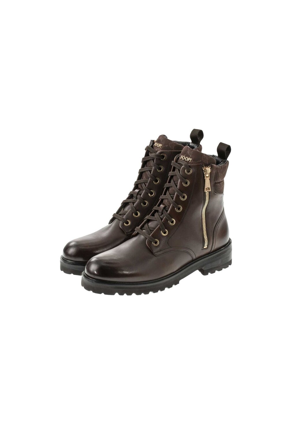 Качественные ботинки от бренда JOOP! Сочетание шнуровки и молнии. С блочным каблуком и овальным носком.