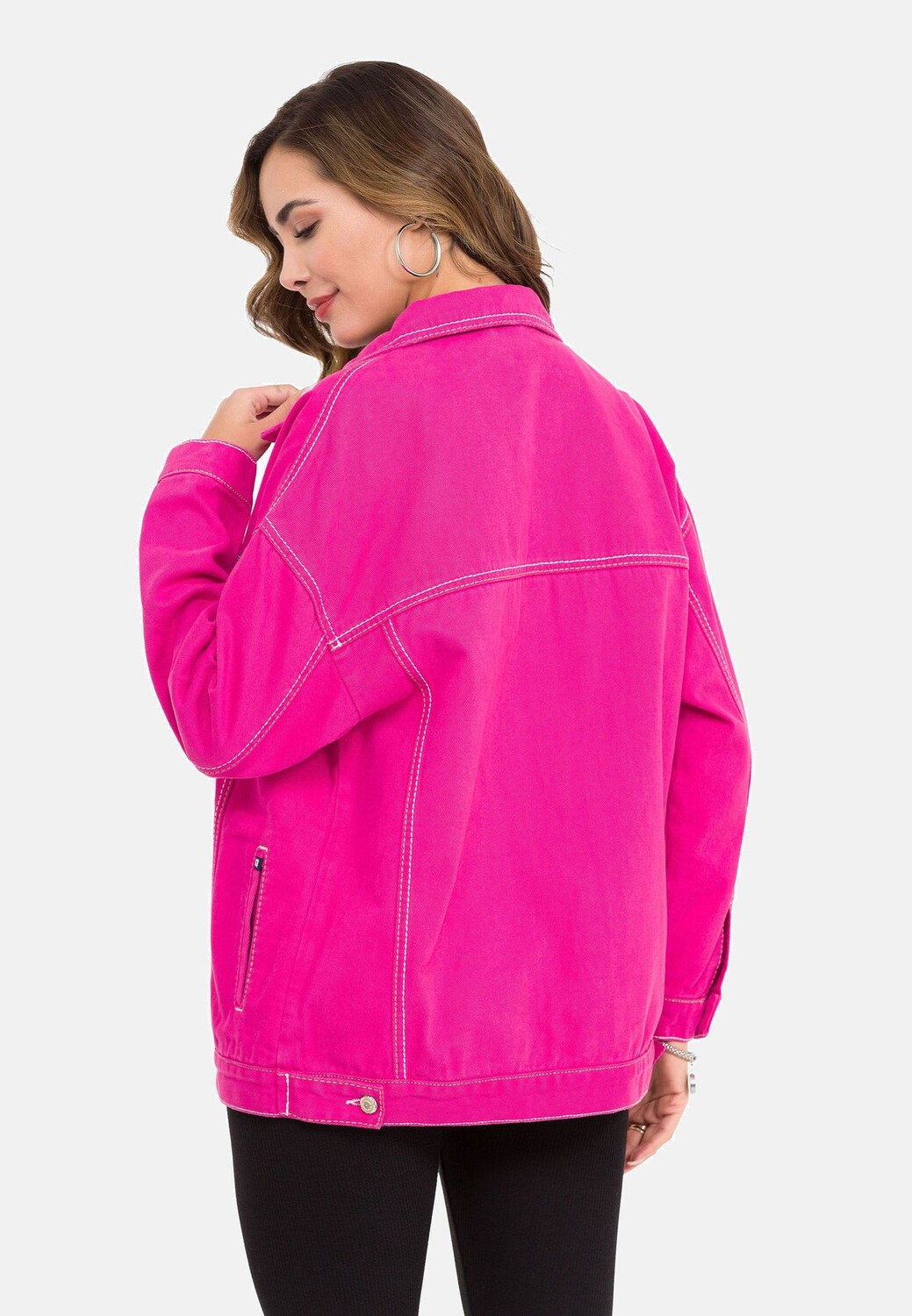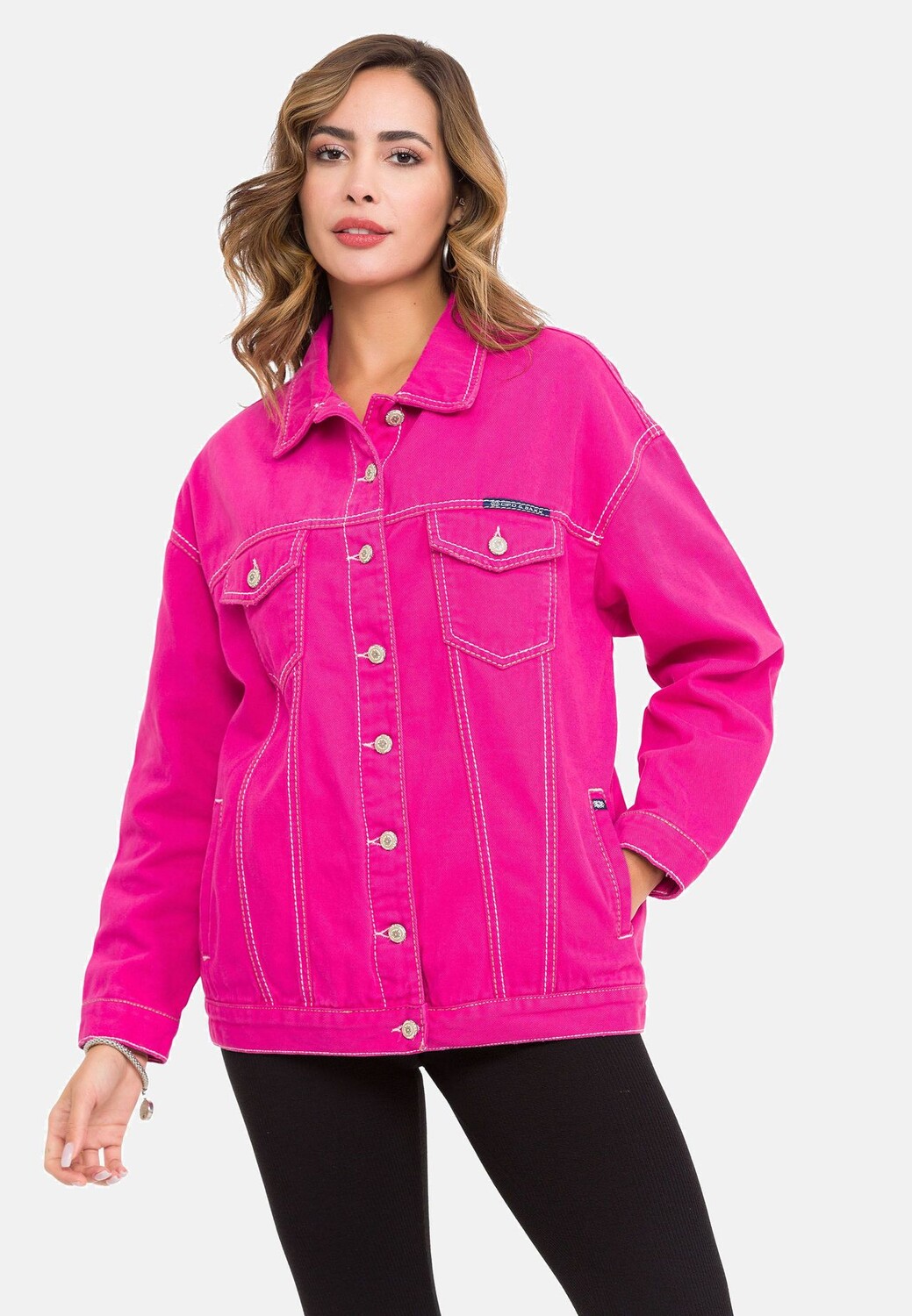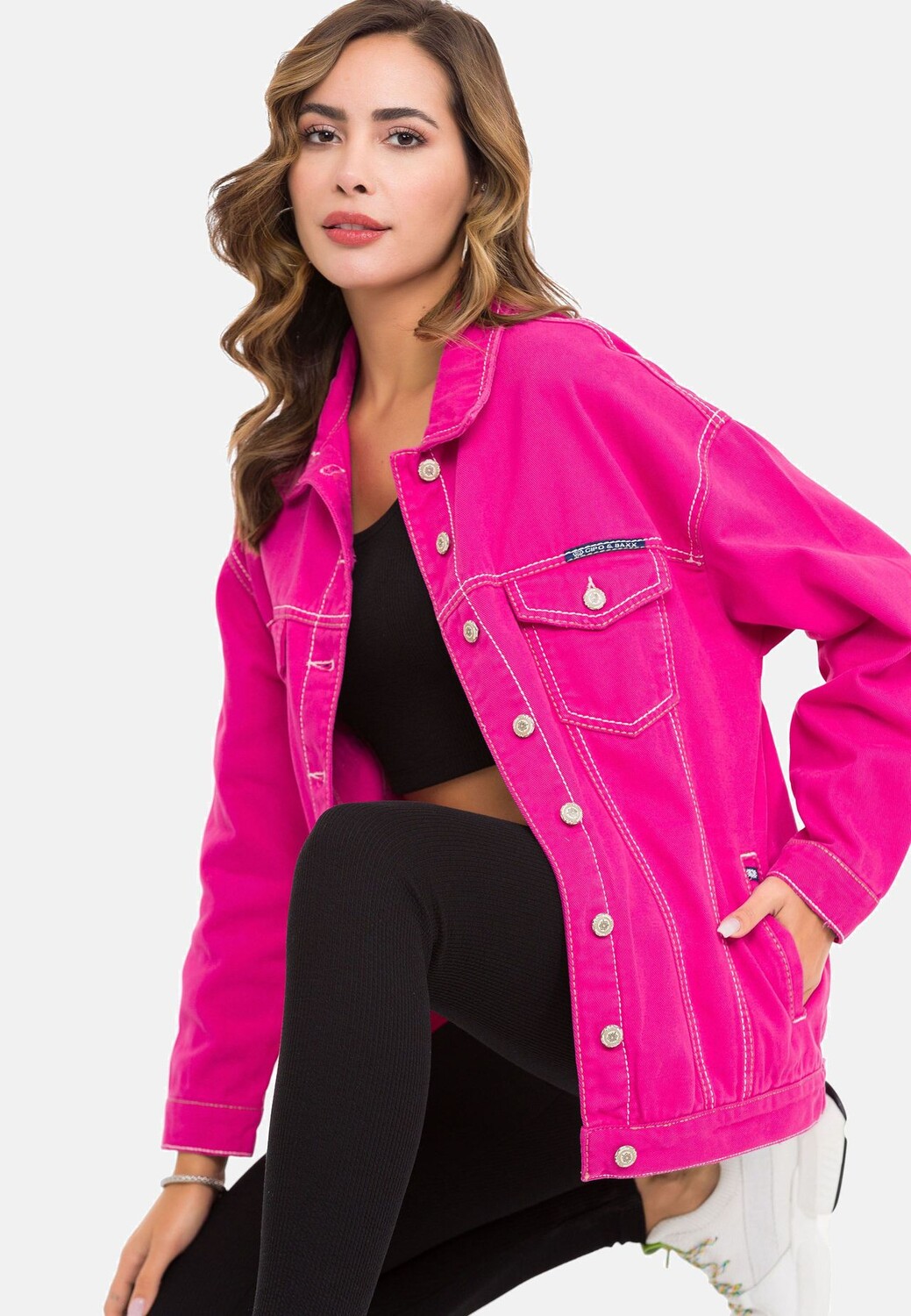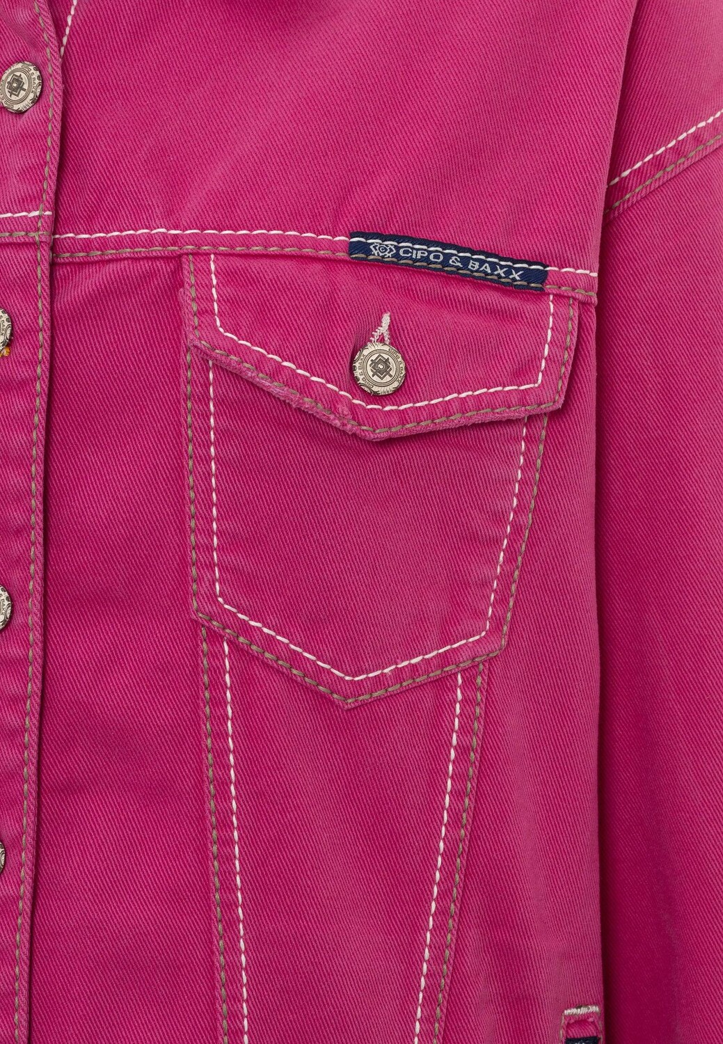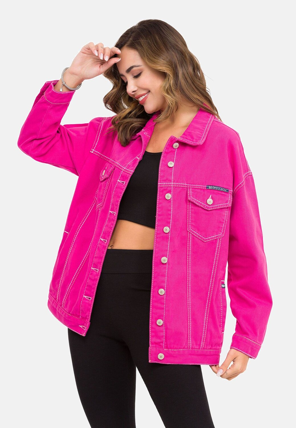 Джинсовая куртка в современном образе CIPO & BAXX, цвет Fuchia