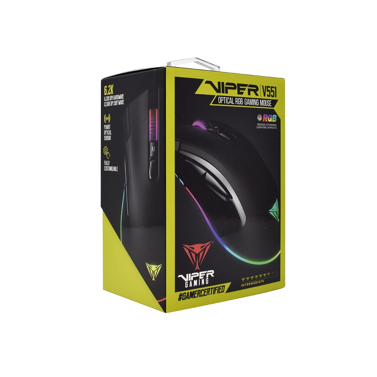 Получите абсолютный контроль независимо от сложности игры! Проводная игровая мышь Patriot Viper V551 позволяет настроить на свой вкус невероятно красочные светодиодные зоны подсветки в полном RGB-спектре. Кроме того, 7 удобных программируемых кнопок макросов подойдут под любые ваши нужды. Мышь V551 оснащена усовершенствованным оптическим сенсором PixArt 3327 с возможностью настройки DPI до уровня 6200. Используя ПО Viper, можно настроить DPI до уровня 12000 и легко управлять параметрами в персональных профилях одним щелчком мыши, что дает преимущество в игре.
