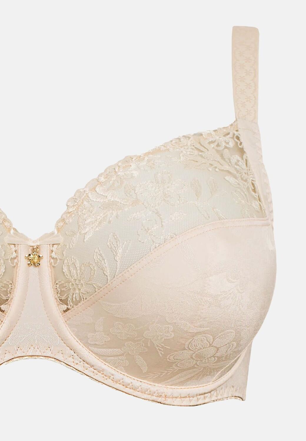 Серия Jasmin отличается тончайшей микрофиброй с тонким мерцающим цветочным узором из Бельгии в сочетании с нежной цветочной вышивкой из Австрии. Продуманный четырехчастный крой чашки с усилением из плотного трикотажного полотна под грудью обеспечивает максимальный комфорт при ношении. Твердая спинка из тюля обеспечивает дополнительную поддержку.