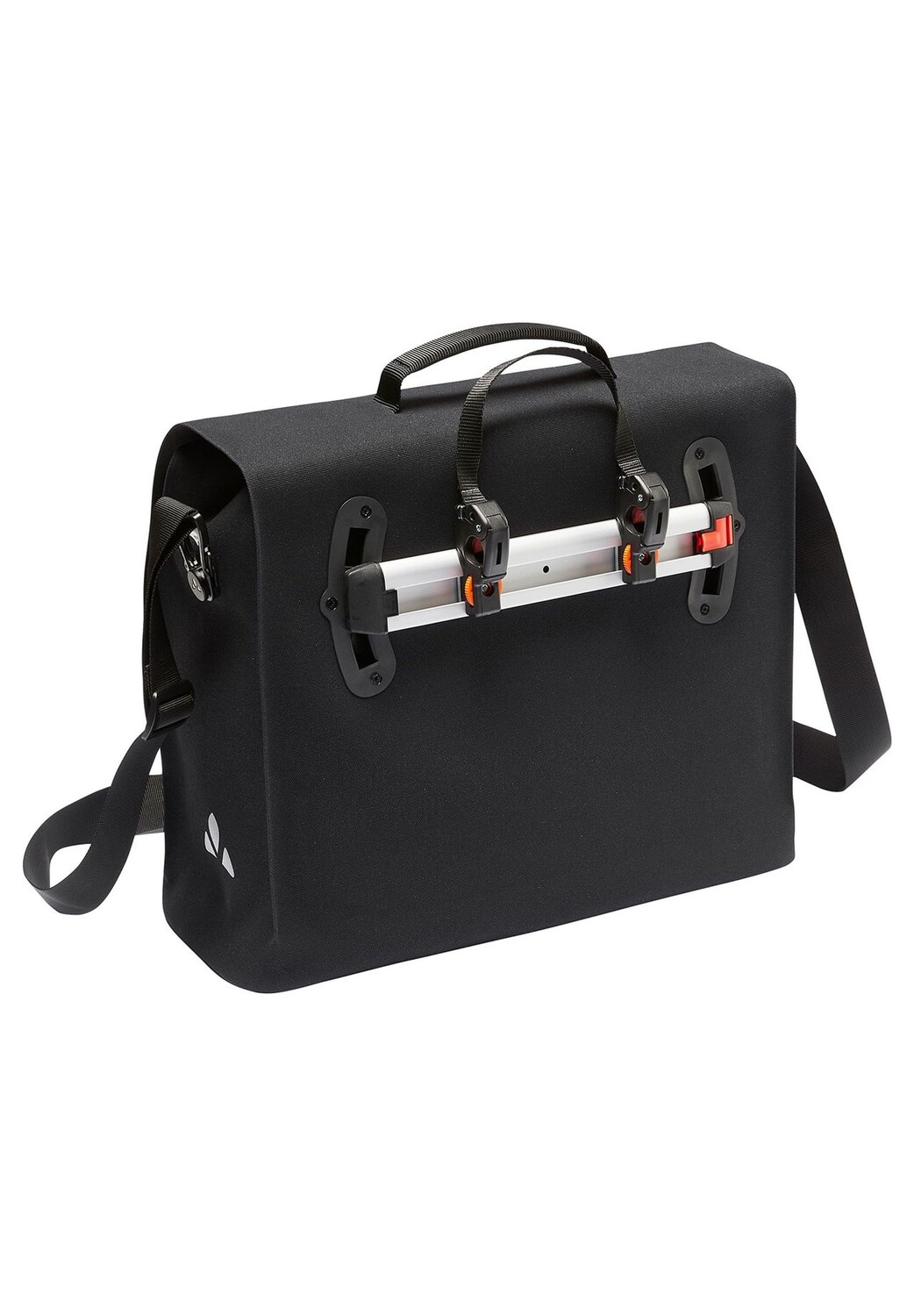 Спортивная, модная велосипедная сумка-шопер от Vaude в формате портфеля, изготовленная из прочного полиамида. В основном отделении достаточно места для хранения вещей. С помощью входящих в комплект крючков QMR можно закрепить сумку на багажнике (диаметром до 16 мм) велосипеда.