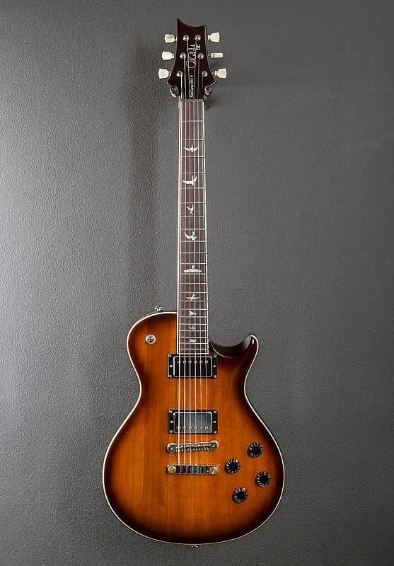 McCarty Tobacco Sunburst, корпус из красного дерева с окаймленным неглубоким верхом в виде скрипки, гриф из красного дерева с резьбой Pattern Vintage, накладка грифа из палисандра радиусом 10 дюймов со вставками Bird, длина мензуры 24,594 дюйма, ширина верхнего порожка 1 11/16 дюйма, 58 /15 LT "S" звукосниматели в бридже и нэке, 3-позиционный тумблер с регуляторами громкости и тембра push/pull для каждого звукоснимателя, двухкомпонентный бридж PRS и колки в винтажном стиле, с сумкой для концерта