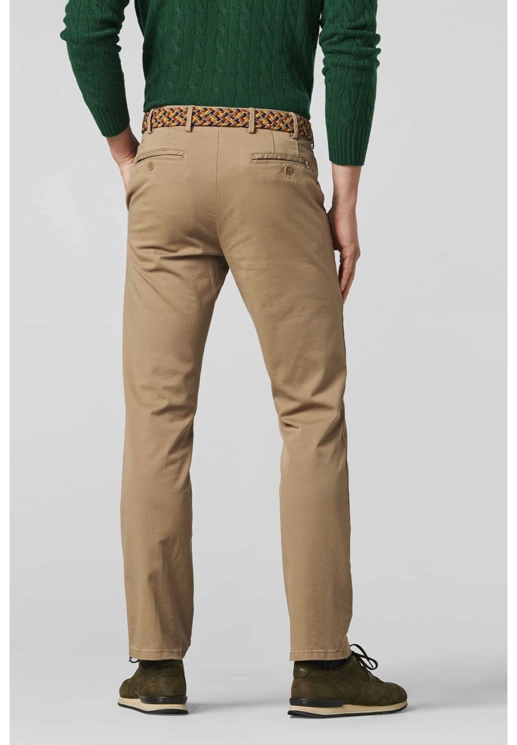 Эти мягкие брюки чинос станут идеальным спутником в путешествии. Он изготовлен из эластичной хлопчатобумажной ткани, которая всегда прекрасно держит форму и при этом чрезвычайно удобна в носке. Специальный эластичный пояс обеспечивает дополнительную ширину до 8 см, поэтому высокий уровень комфорта, характеризующий наши брюки MEYER, гарантирован даже в длительных поездках на автомобиле, поезде или самолете. Задние карманы на пуговицах и дополнительный карман для монет дополняют спортивный образ.