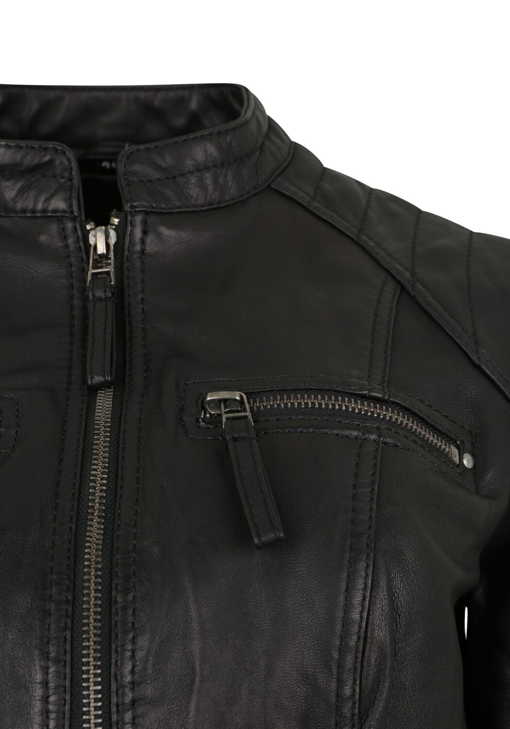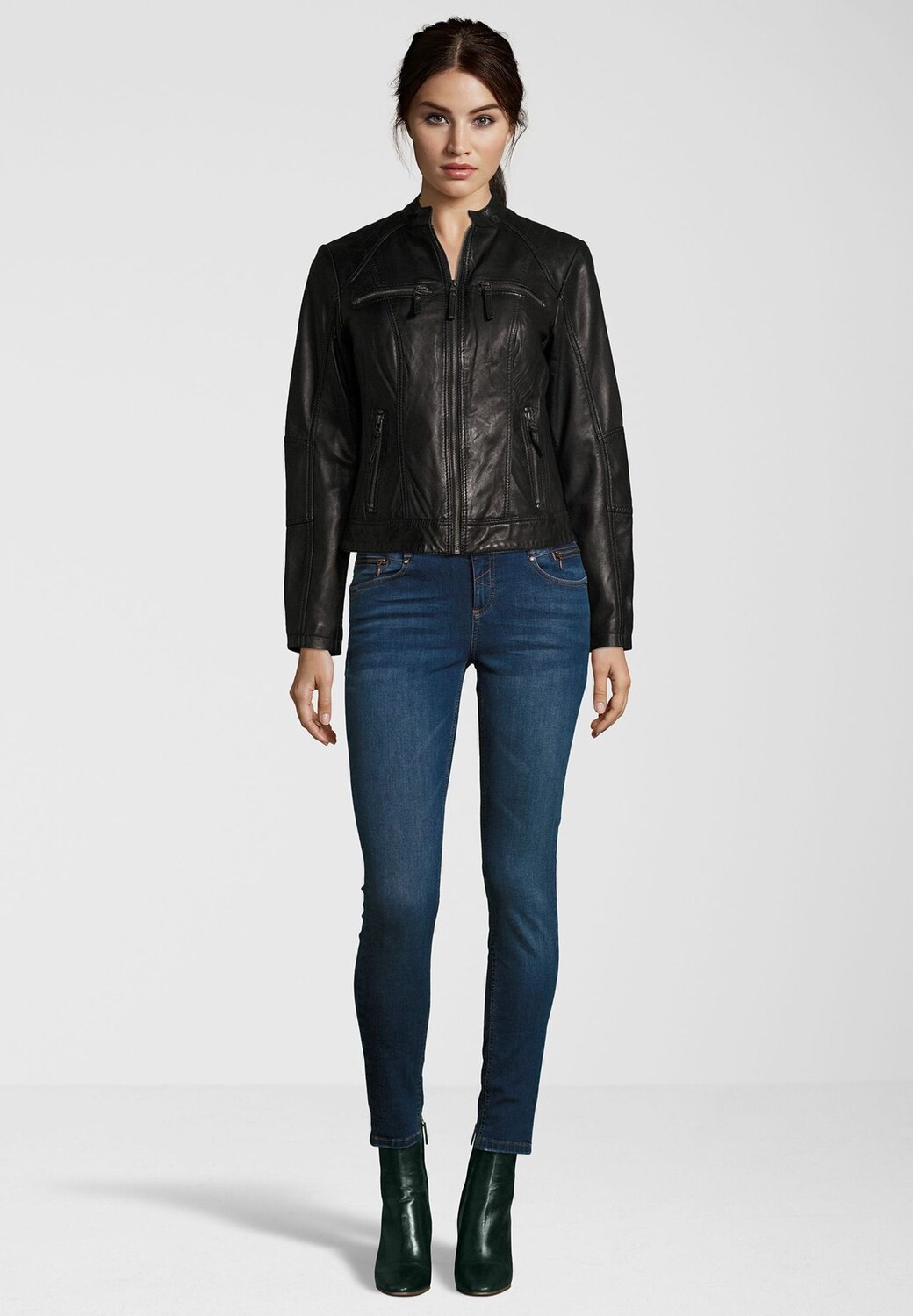 Стильная кожаная куртка от 7eleven отличается модным и повседневным внешним видом. Он изготовлен из эксклюзивной тонкой кожи и покрыт внутри высококачественным полиэстеровым материалом. Элегантная куртка застегивается на молнию во всю длину до небольшого воротника-стойки. Несколько привлекательных карманов на молнии и множество привлекательных вытачек придают этой куртке особенный вид. Классическая кожаная куртка подходит для всех случаев и занятий и является незаменимой вещью в каждом базовом гардеробе.