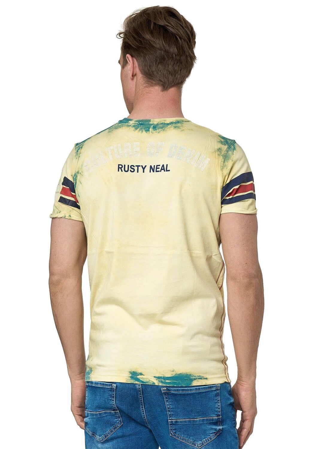 Футболка Расти Нила выделяется своим непринужденным винтажным внешним видом. Она изготовлена из мягкого, качественного и эластичного хлопка, поэтому рубашка всегда удобна. Универсальная футболка гарантирует стильный внешний вид: элегантная в офисе, повседневная днем или в качестве отличного акцента на вечеринках или других мероприятиях. Благодаря качественному исполнению материалов после стирки не происходит потери цвета, а усадка футболки больше не проблема! Эта футболка известного модного бренда Rusty Neal впечатляюще демонстрирует, насколько современной и в то же время вневременной может быть футболка. Он изготовлен в честных условиях труда, с очень хорошим качеством швов и из высококачественных материалов, прошедших тщательную обработку. Наша модель ростом 1,85 м весит более 80 кг и носит футболку размера: M (средний).