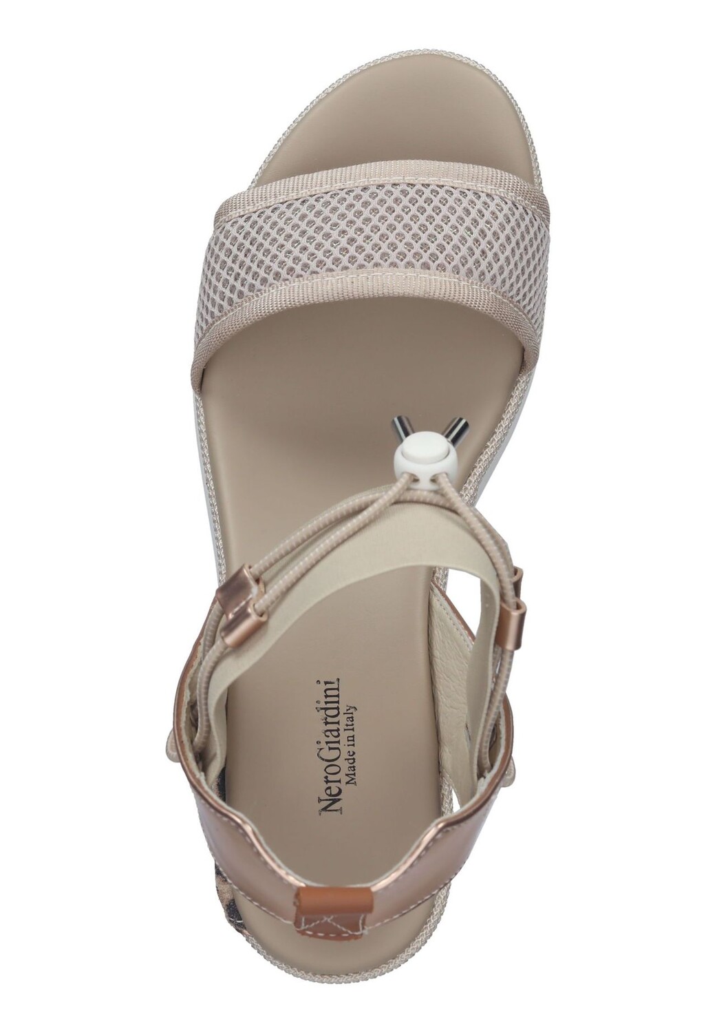Описание товара: С помощью этих удобных и изящных босоножек на танкетке от Nero Giardini с эластичной вставкой и выдающимся качеством вы не только продемонстрируете свое чувство стиля, но и свою требовательность к высокому качеству. И последнее, но не менее важное: эта современная и высококачественная обувь изготовлена ​​из высококачественной кожи и имеет металлический вид, что делает ее идеальным спутником в повседневной жизни.