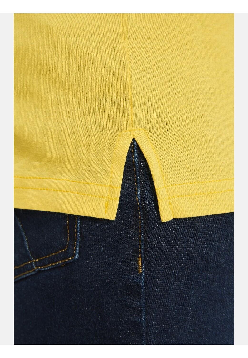 Особенности из прочного хлопкового трикотажа Гладить при нормальной температуре желтый Стирать с похожими цветами, Стирать наизнанку, Гладить наизнанку Футболка SÖLVE в двухслойном исполнении Комфортная посадка – удобный и прямой крой Удобный и прочный трикотаж Вырез и манжеты рукавов многослойные Яркий принт с аппликациями в СП стиль Свойства материала: Дышащий Стиль: Повседневный Покрой: Прямой Вырез: Круглый вырез Длина рукава: Короткий рукав